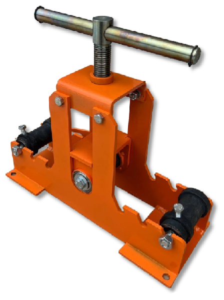 В комплекте 1 верхний прижимной каленый ролик ф40мм с насечками и 2 нижних каленых роликов ф50мм с регулировочным по ширине профиля кольцом.