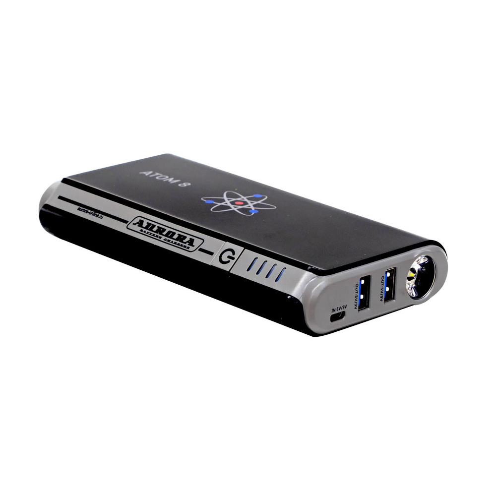 AURORA ATOM 8 – мобильное пусковое устройство нового поколения, оснащённое встроенным литий-полимерным аккумулятором LiPo.