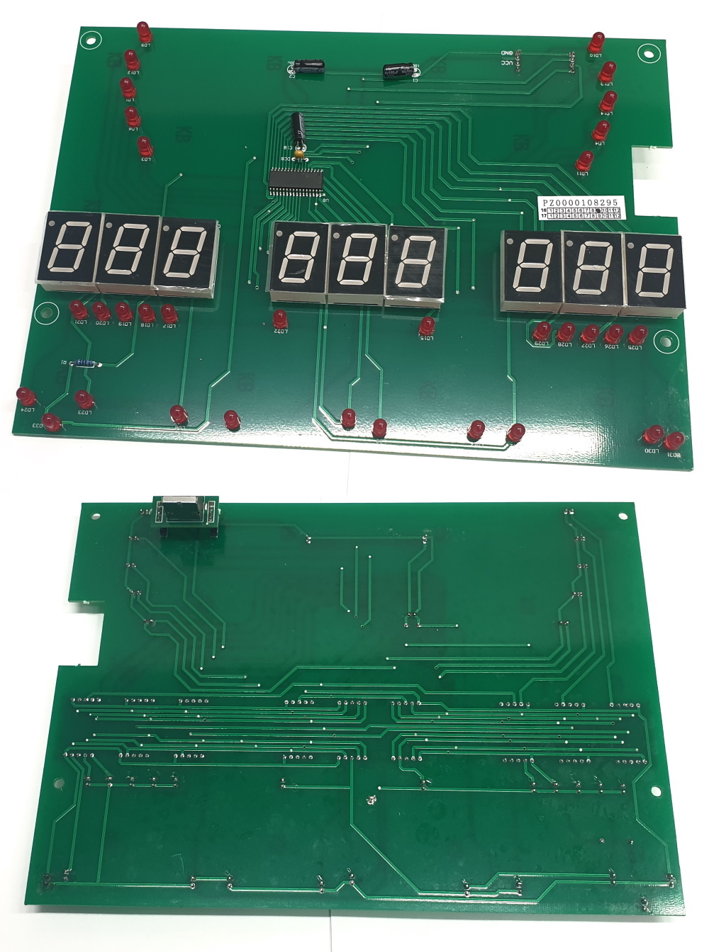 Плата интерфейса индикации . Отображает визуальную информацию параметров цикла балансировки с помощью световых индикаторов и Led дисплеев. Применяемость к балансировочным станкам: ST-303А