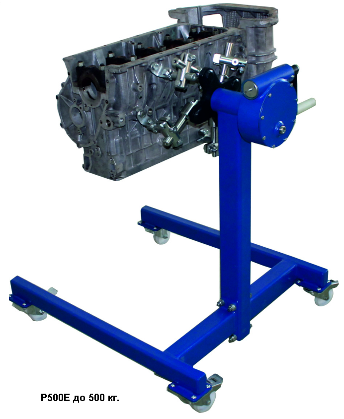 Р500Е Стенд предназначен для сборки-разборки двигателей автомобилей и других агрегатов отечественного и импортного производства весом до 500кг. Оснащен самотормозящим червячным редуктором, который позволяет повернуть и зафиксировать закрепленный на стенде двигатель или другой узел так, чтобы было удобно и качественно проводить ремонтные работы.