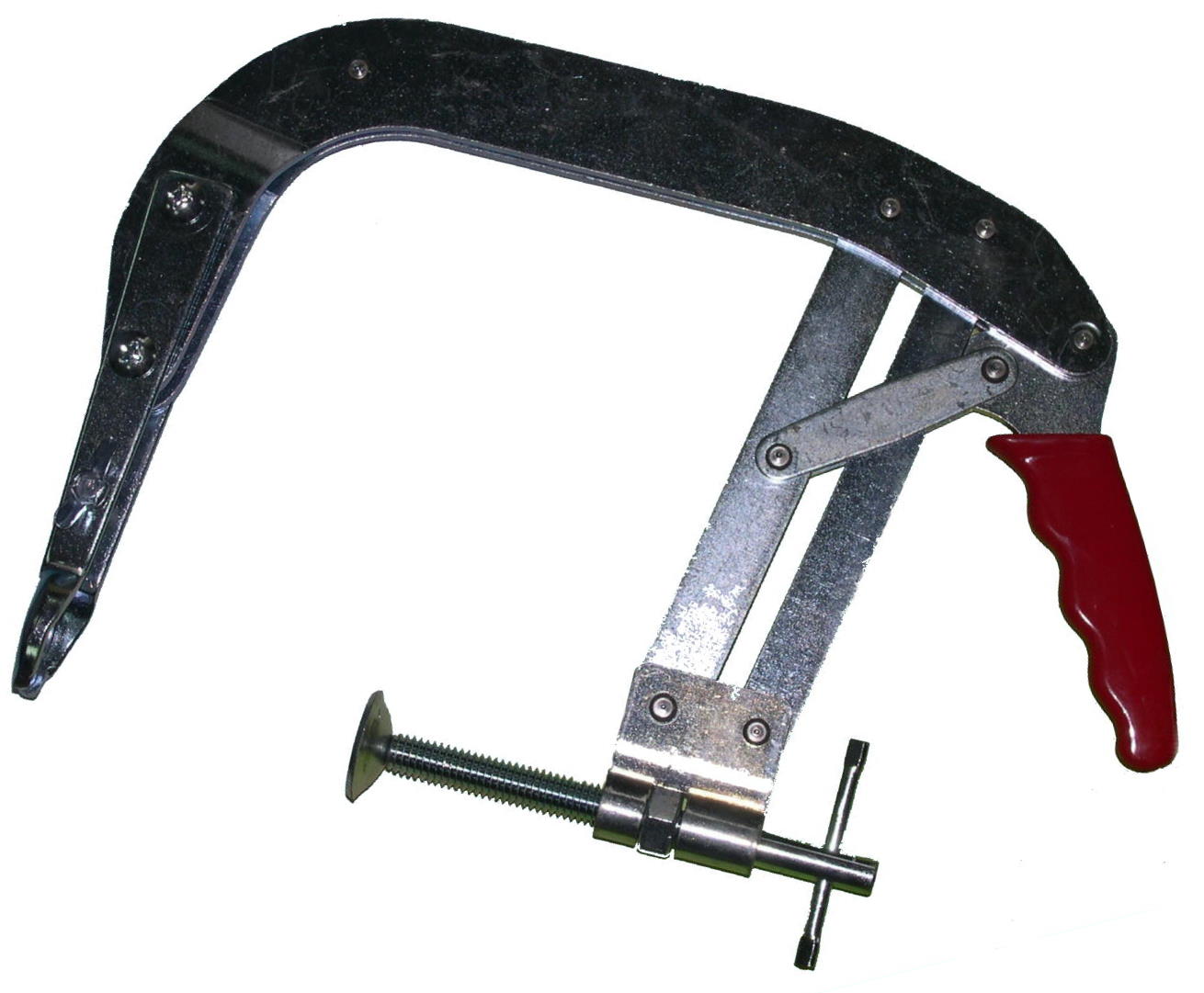 KA-5057 Рассухариватель клапанов. Предназначен для сжатия пружин впускных и выпускных клапанов. Особенности: Выполнен в форме струбцины. Используется при снятой головке блока цилиндров. Регулировка рабочего хода с помощью резьбового вала в зависимости от длины клапана. Фиксация струбцины в необходимом положении позволяет освободить руки для удобства демонтажа стопорных сухарей клапана. Рабочий диапазон: 75 – 200 мм.