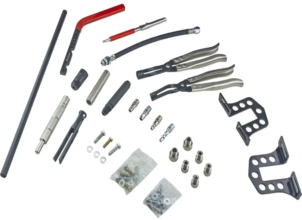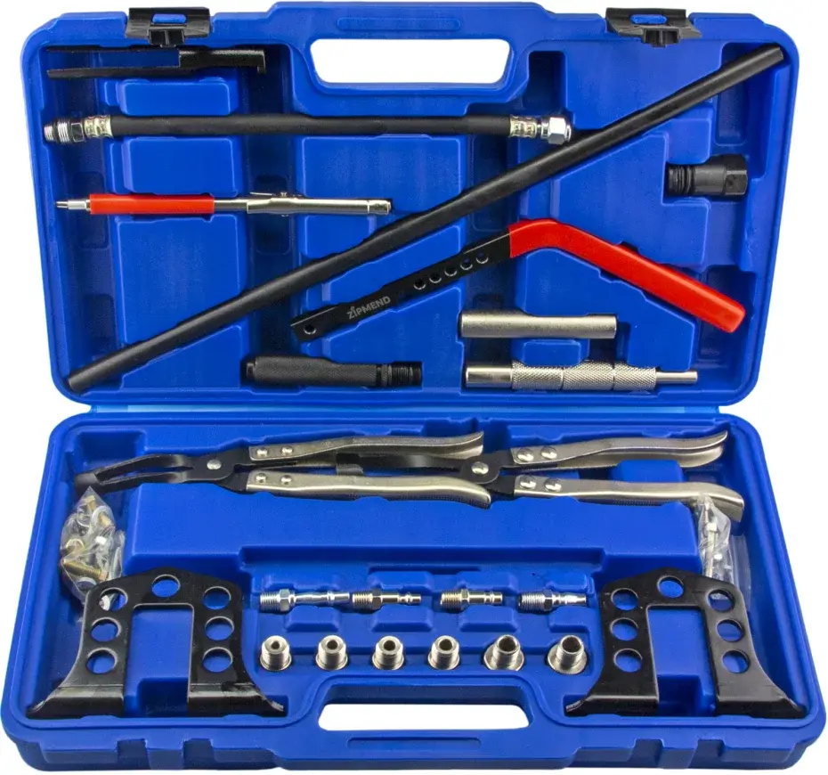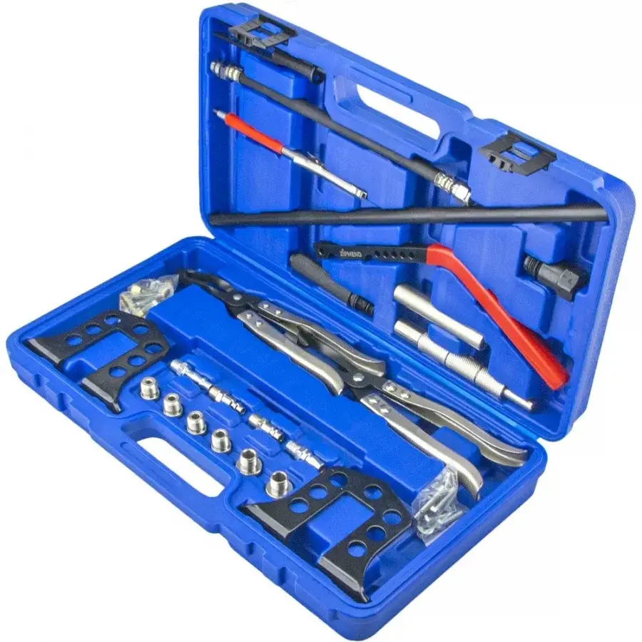 - Набор включает в себя всё необходимое для снятия стопорных сухарей клапанов, для снятия и установки клапанных пружин, а так же для снятия и установки маслоотражающих колпачков.