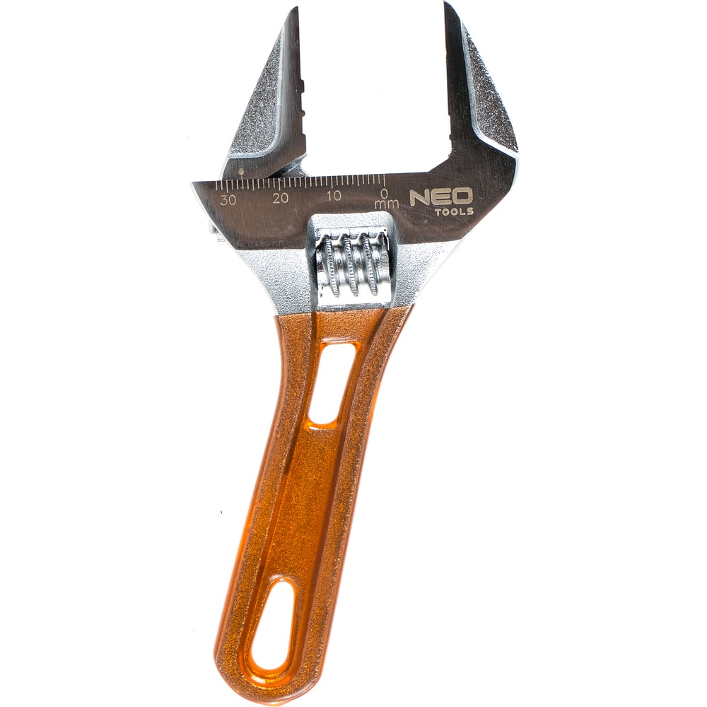 Разводной ключ короткий 139 мм, рабочий диапазон 0-32 мм NEO 03-020 подходит для работы с крепежом различных размеров и формата.  Инструмент оснащен широким резьбовым валом, который обеспечивает точность настройки и исключает перекашивание.