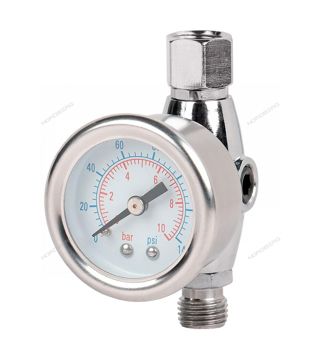 Регулятор давления воздуха для краскопультов NORDBERG NP8003 предназначен для оперативной настройки давления воздуха непосредственно в процессе покраски.