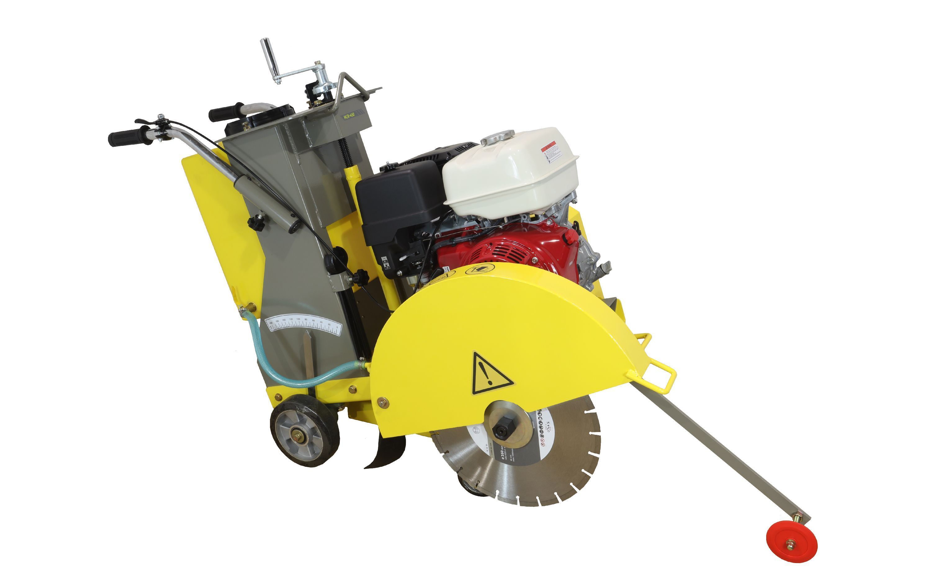 Особенности Простой, мощный и надежный бензиновый нарезчик швов мощностью 11,7 л.с. для выполнения технологических проемов в бетоне, асфальте и других сверхтвердых напольных поверхностях на глубину до 140 мм при помощи алмазного диска диаметром до 450 мм. Данная модель отличается наилучшим сочетанием цена/качество и пользуется наибольшей популярностью. Инструмент устойчив, прост в использовании, удобен в управлении. Для точного ведения машины в ее конструкции предусмотрена передняя направляющая. Преимущества Низкий уровень вибрации - для комфортной работы оператора, Удобная система опускания/подъема в конструкции придает удобство работе оператора, Система поликлиновых ремней служит для оптимальной передачи мощности на режущий диск, Простота транспортировки благодаря встроенным колесам и удобным рукояткам. ПОДРОБНЫЕ ТЕХНИЧЕСКИЕ ХАРАКТЕРИСТИКИ Характеристики Модель HCR-450 Глубина резания, мм 140 Диаметр диска, мм 300 – 450 Емкость водяного бака, л 35 Модель двигателя HONDA GX 390 Мощность двигателя, кВт (л.с.) 8,7 (11,7) Скорость вращения двигателя, об/мин 3600 Объем топливного бака, л 6,1 Масса нетто, кг 112 Габаритные размеры в упаковке ДхШхВ, мм 1070х570х1030 Рабочие габаритные размеры ДхШхВ, мм 1580х525х990