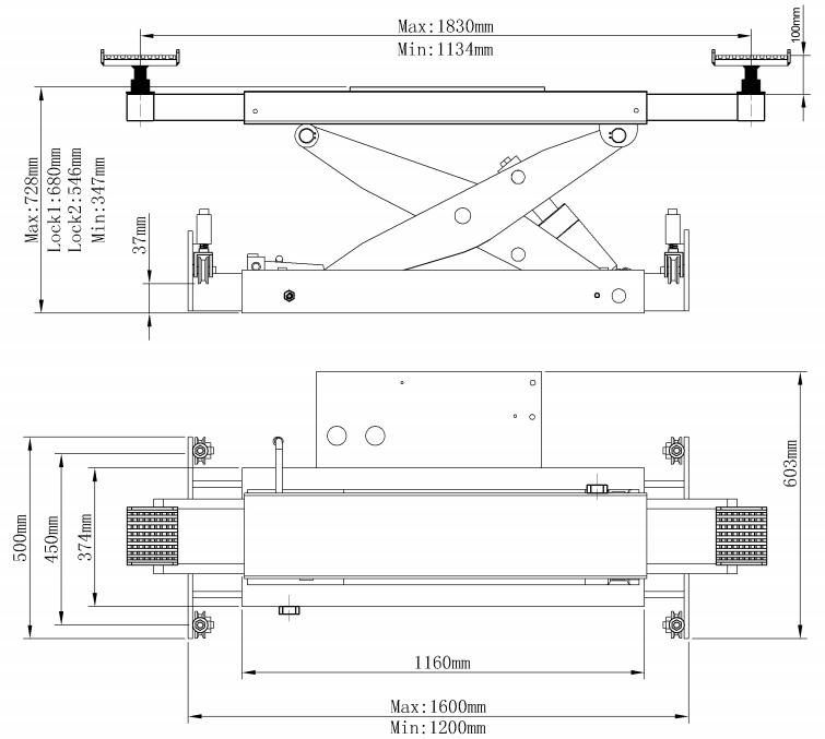 Траверса пневмогидравлическая для ножничных и четырехстоечных подъемников, грузоподъемность - 9 т., автономное управление пневматической педалью