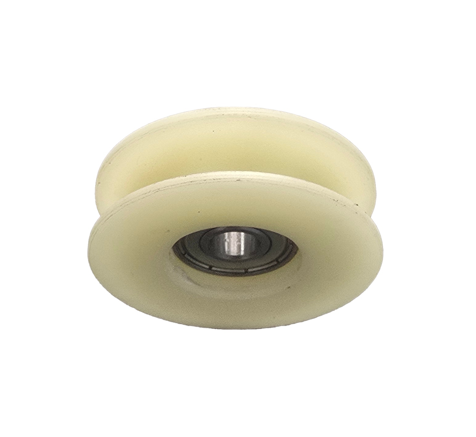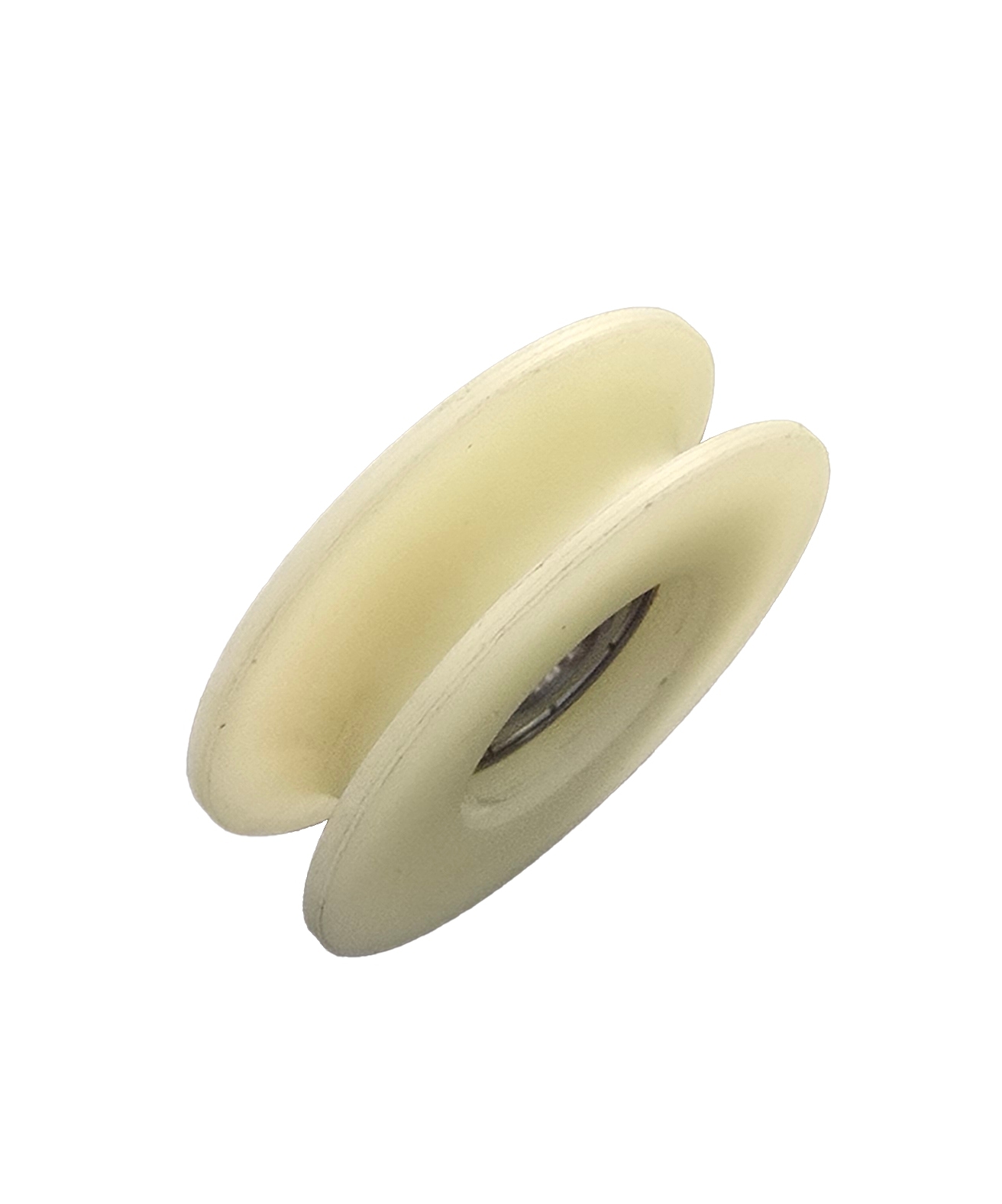 Капролоновый ролик с подшипником, канавка под веревку, канат мах 9мм, ширина 14мм, внутренний ф - 8мм
