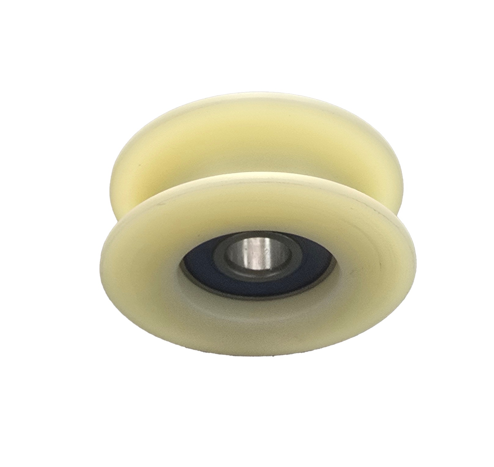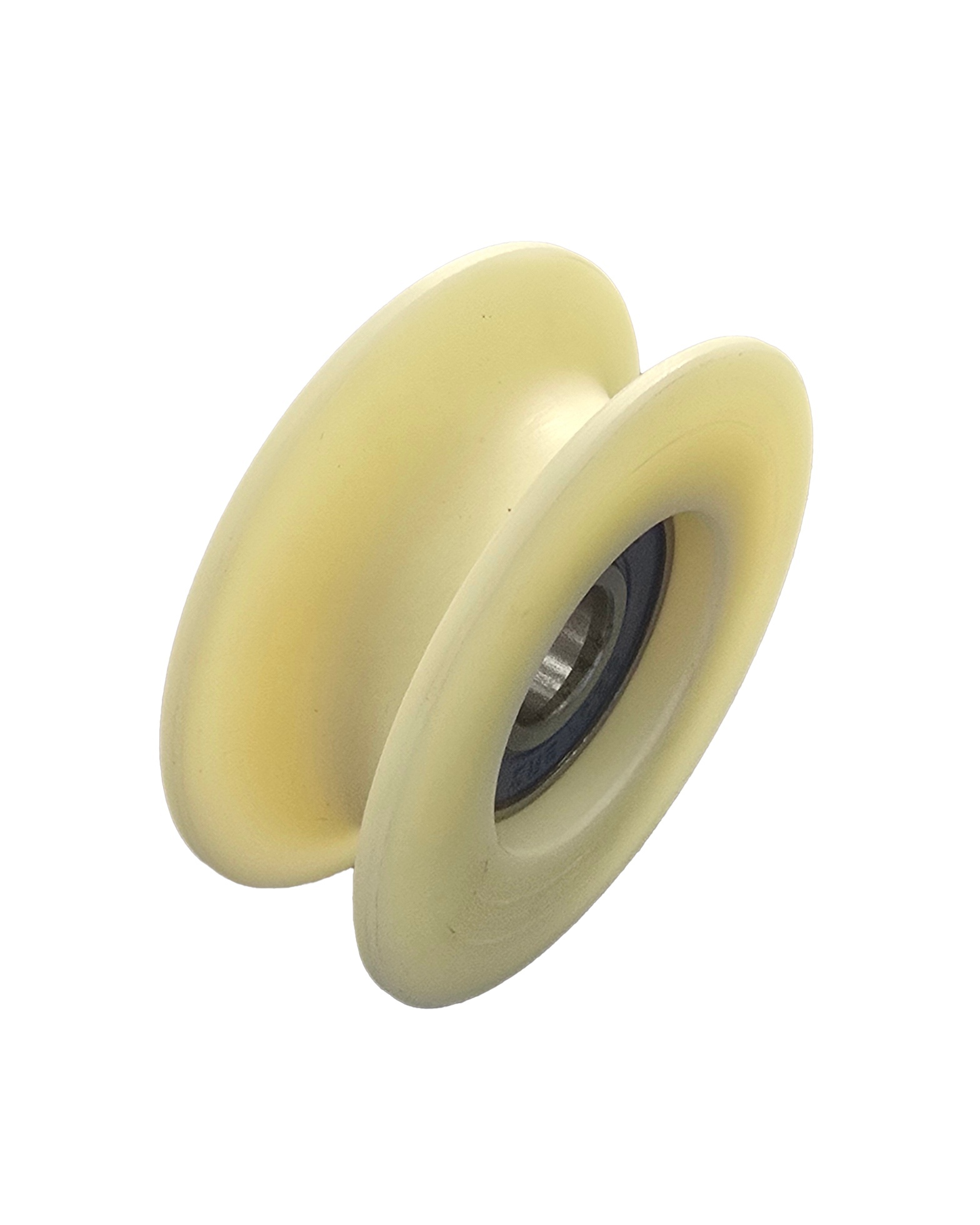 Капролоновый ролик с подшипником, канавка под веревку, канат мах 15мм, ширина 20мм, внутренний ф - 12мм