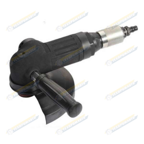 Корпус пневмоболгарки изготовлен из легкого алюминиевого сплава и стали. Пневмоболгарка снабжена защитным металлическим кожухом для предотвращения травм персонала во время работы. Выхлоп отработанного воздуха направлен в направлении рабочей зоны и способствует удалению пыли и других загрязнений. Для удобства резки пневмоболгарка снабжена дополнительной обрезиненной ручкой.