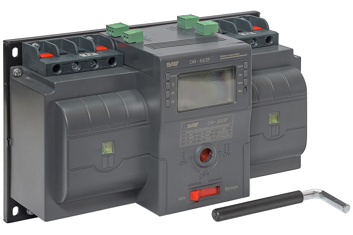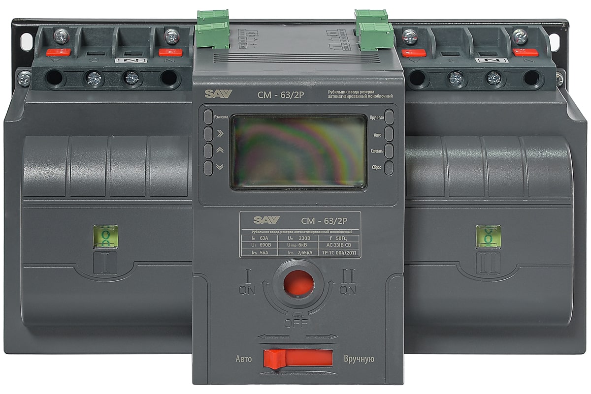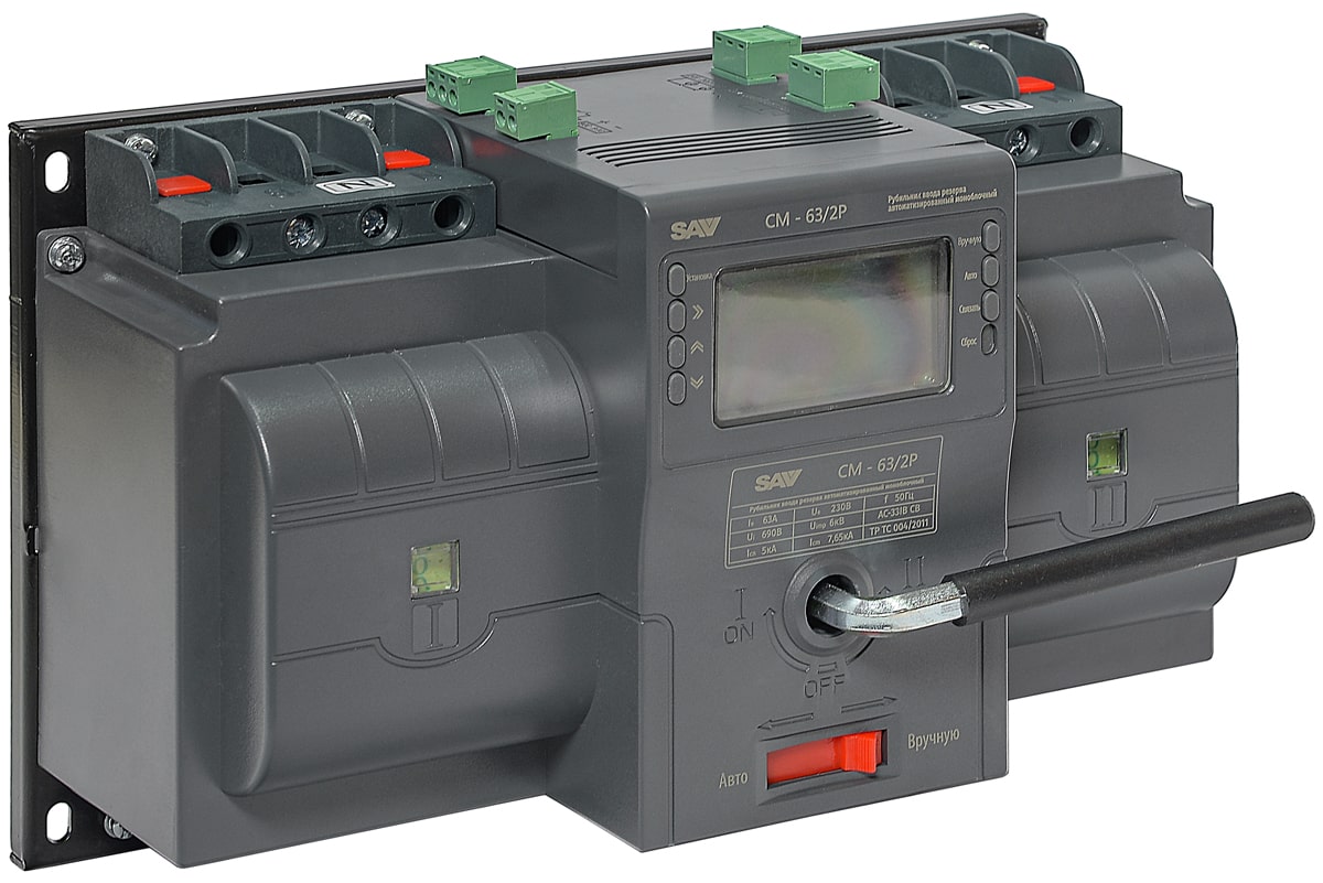 Рубильник реверсивный автоматизированный моноблочный (Блок автоматического ввода резерва АВР) CM-63/2P/Automated transfer switch