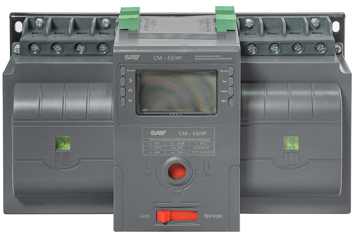 Рубильник реверсивный автоматизированный моноблочный (Блок автоматического ввода резерва АВР) CM-63/4P/Automated transfer switch