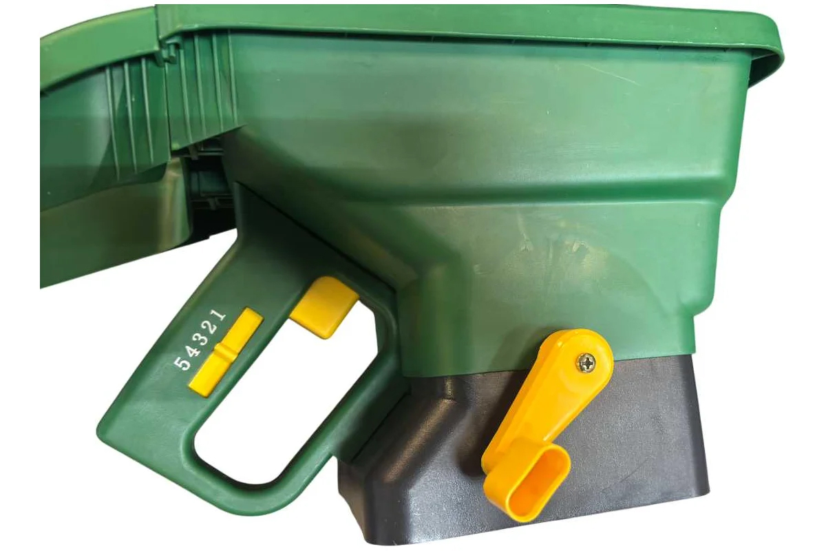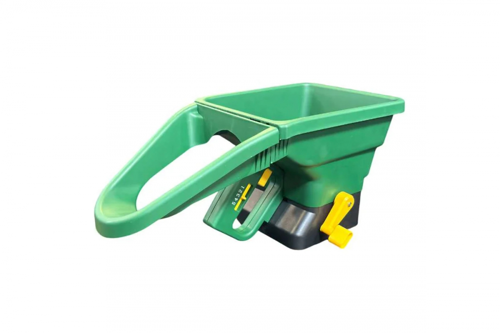 Эргономичная ручка под локоть обеспечивает удобство использования, и в отличие от подобных ручных разбрасывателей , позволяет работать им продолжительное время не чувствуя усталости, а 5-ти кратная возможность регулировки нормы разбрасывания позволяет контролировать расход материала. Разбрасывающий диск обеспечивает равномерное разбрасывание, а ограничитель разбрасывания направлен от человека.