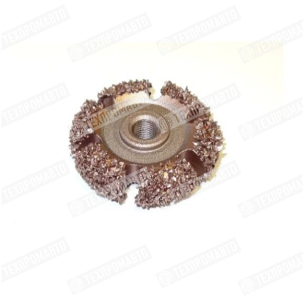 Шероховальное крупнозернистое кольцо с покрытием из карбида вольфрама с добавками меди арт. S2004 диаметром 50 мм и толщиной 14 мм предназначено для снятия верхнего слоя резины до корда и формирования воронки под углом 45°в месте повреждения с внешней стороны шины при ремонте грузовых шин и КГШ.
