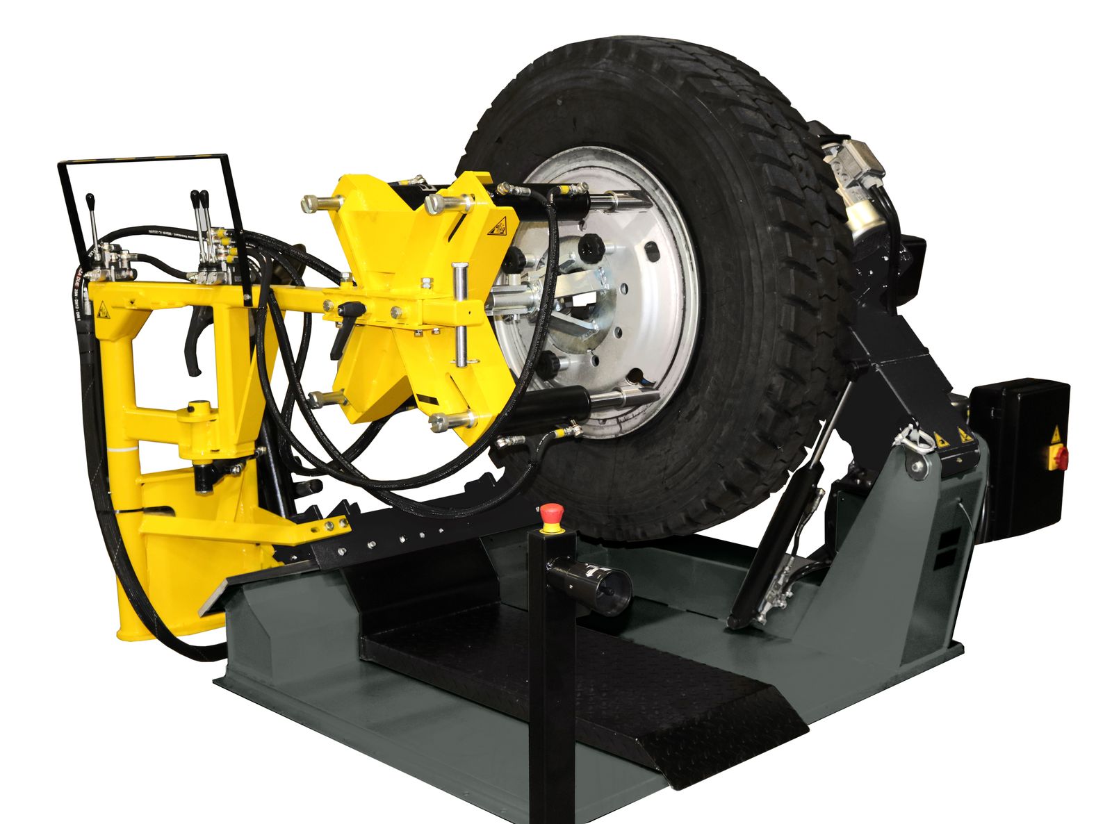 Шиномонтажный станок предназначен для демонтажа/монтажа шин всех типов колес грузовых автомобилей,специальной и карьерной техники. Оснащён гидравлическим вспомогательным устройством для работы с сверхжёсткими шинами с утолщённой боковиной, колёсами с замковыми кольцами и защитными системами.