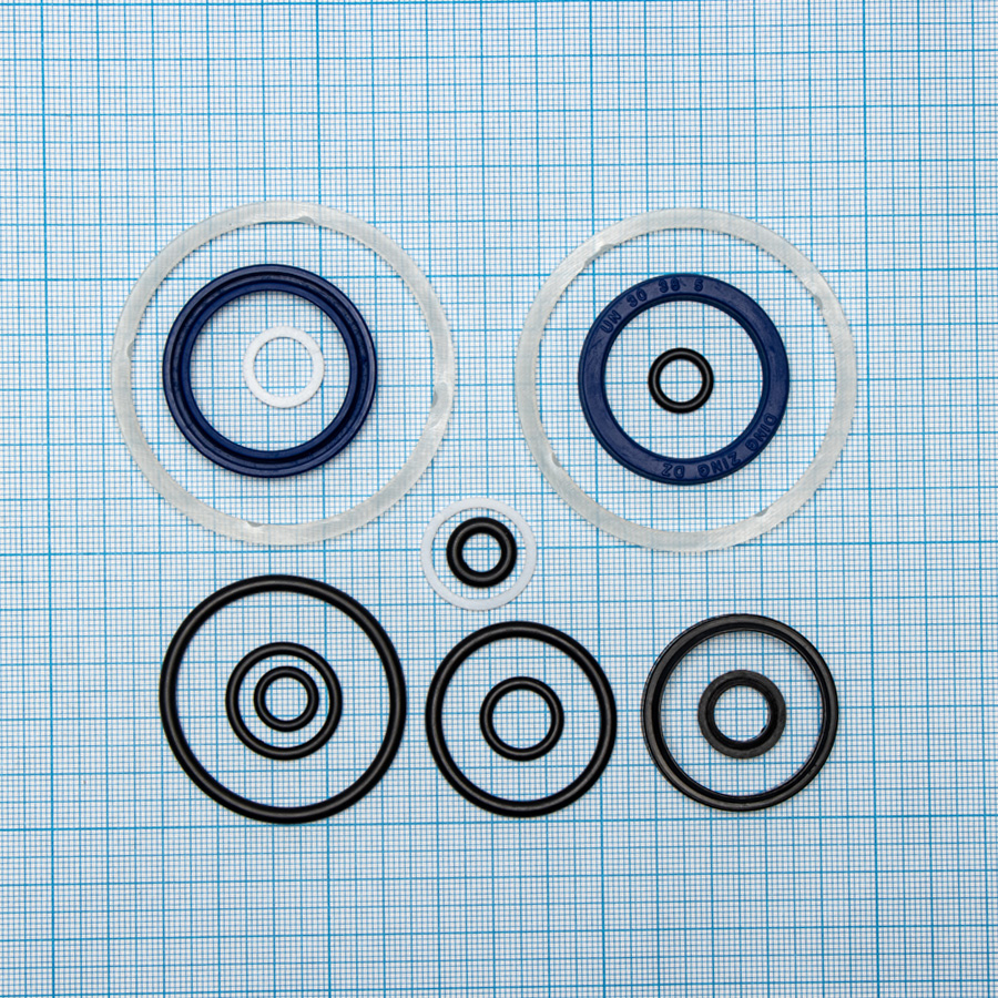 Ремкомплект для стойки трансмиссионной. Комплект включает все необходимые манжеты и уплотнительные кольца для ремонта цилиндра. Применяемость к гидравлическим стойкам: SD0303