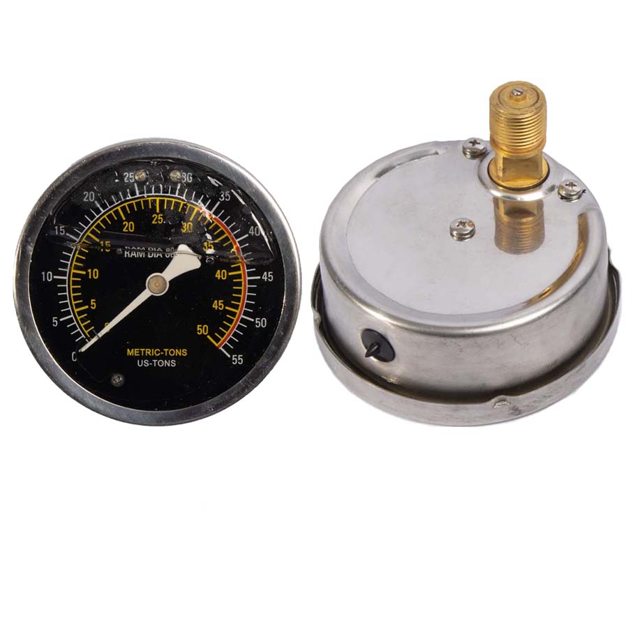 Манометр глицериновый. Обеспечивает высокую точность измерения и плавный ход стрелки без вибраций, за счет наполнения корпуса глицерином. Корпус изготовлен из нержавеющей стали, элементы измерительного механизма выполнены из меди. Особенности: Ударопрочный корпус. Увеличенный срок службы. Диапазоны измерений: Метрическая тонна / US Тонна. Размер резьбы: М20х1,5. Рабочее давление: 30т. Максимальное допустимое давление: 50т. Цена деления шкалы: 1т. Применяемость к прессам:1т. SD0808CE SD0808CEA SD0824