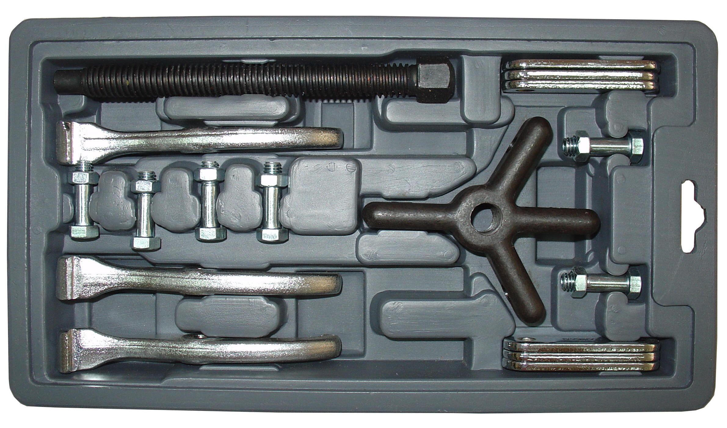 KA-1423 Съемник 3 захвата, 2т, 4" (100 мм). Используется для демонтажа подшипников. Принцип работы: Снятие подшипника происходит механическим способом путём «стягивания» подшипника за обойму тремя или двумя лапами-захватами. Особенности: Наличие универсальной траверсы для двух или для трёх лап-захватов. Лапы-захваты выполнены из хром-ванадиевой стали. Силовой болт изготовлен из высокопрочного закалённого металла. Двухсторонние лапы-захваты с крюками, шириной 9 мм и 17 мм. Комплект набора: Лапы-захваты двухсторонние - 3 шт. Траверса - 1 шт. Силовой болт (общая длина 175 мм) - 1 шт. Крепёжные пластины - 6 шт. Крепёжные болты - 6 шт. Инструкция - 1 шт. Пластиковый ложемент для хранения - 1 шт. Картонная коробка - 1 шт. При работе обязательно используйте защитные очки! Использование набора допускается только квалифицированным персоналом с соблюдением техники безопасности!