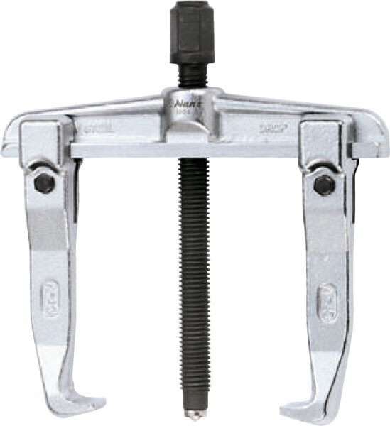 5312-03 двух лапый съемник, 3' Универсальный съемник с двумя захватами «американского типа» является одним из наиболее простых и в то же время, удобных в применении типов съемников. Захваты свободно перемещаются по направляющим траверсы, сохраняя одинаковую площадь пятна контакта лапок с демонтируемой деталью. При нагрузке захваты заклиниваются на направляющих, что предотвращает соскальзывание лапки с демонтируемой детали. Съемник также можно использовать для внутреннего захвата детали. Захваты изготовлены из хромованадиевой стали путем ковки. Ходовой винт изготовлен из хромомолибденовой стали.