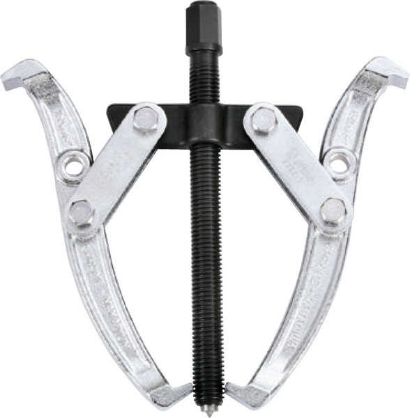 Двух лапый съемник на 6 тонн, длина 6" , глубина зева 70-150 мм Универсальный съемник с двумя поворотными двусторонними захватами. Предназначен для демонтажа различных деталей, благодаря возможности перестановки захватов по глубине и по направлению захвата детали (внутренний или наружный). Захваты изготовлены из хромованадиевой стали путем ковки. Ходовой винт изготовлен из хромомолибденовой стали.