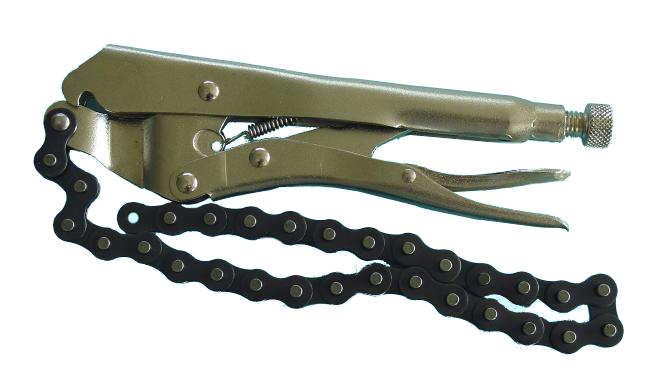 KA-2037 Съемник масляного фильтра цепной. Предназначен для откручивания масляных фильтров легковых автомобилей. Особенности: Надёжная конструкция с регулируемым зажимом. Хром-молибденовый сплав. Возможно использование зажима в сантехнике. Возможно использование зажима для фиксации деталей неправильной формы. Длина цепи 480 мм. Длина съемника 215 мм. Диаметр обслуживаемых фильтров: до 6" (152 мм). Комплектация: Съёмник масляного фильтра цепной - 1 шт. Блистерная упаковка - 1 шт. ОСТОРОЖНО! В масляном фильтре может оставаться горячее моторное масло!
