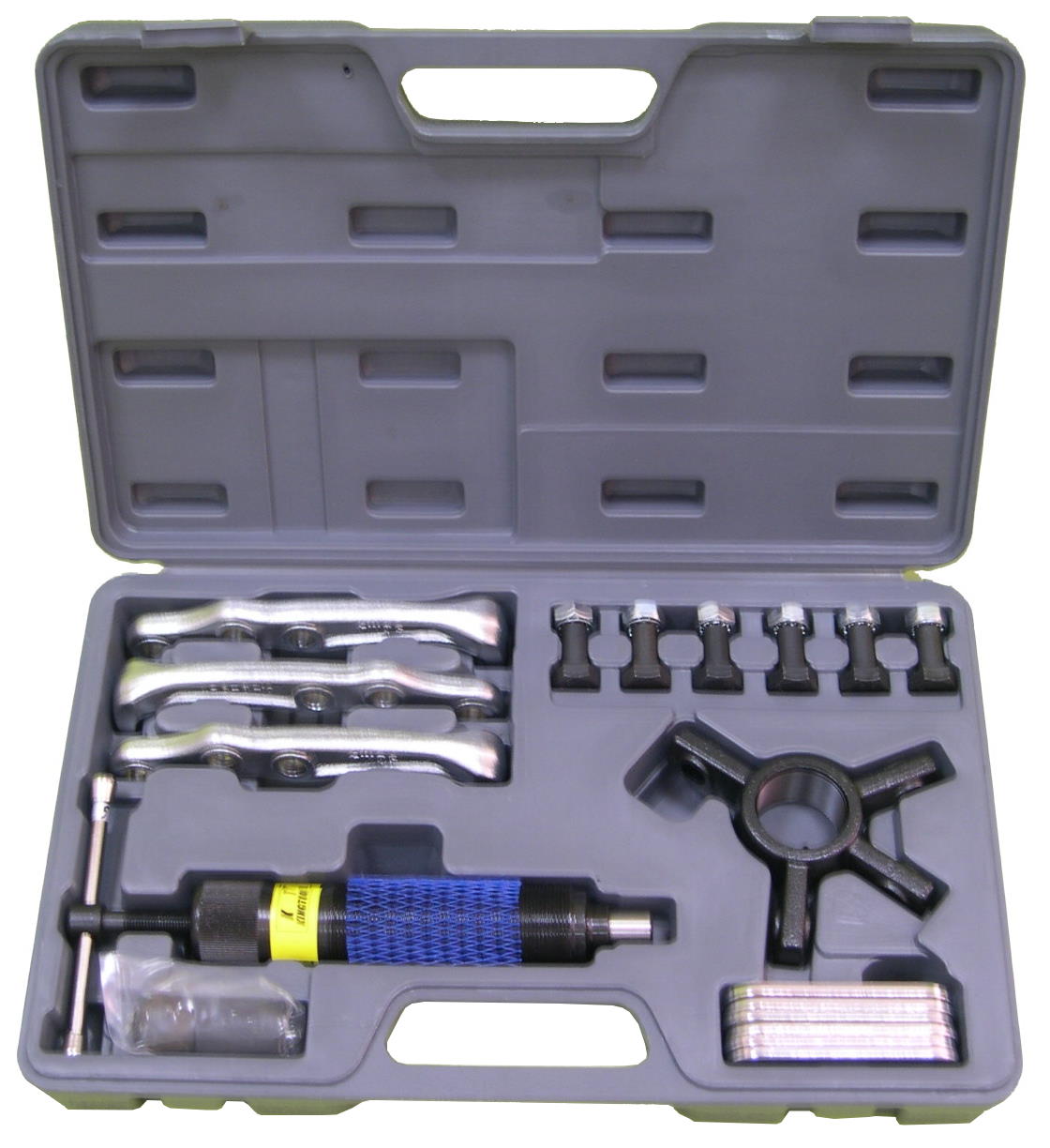 KA-1020 Съемник многофункциональный гидравлический. Набор подходит для извлечения различного рода подшипников, шкивов, шестеренок и других деталей автомобиля. Благодаря прочной конструкции и большому усилию гидравлического цилиндра, съемник можно использовать для обслуживания грузовых машин, сельскохозяйственной и строительной техники, а так же в промышленности. При необходимости, можно использовать удлинительную штангу для центрального штока цилиндра. Комплект набора: 10-тонный гидро-цилиндр диаметр 37.7 мм - 160 мм * 16Т (дюйм) - 1 шт. Лапы (захваты) - 3 шт. Двойная/тройная головка для крепления лап - 1 шт. Крепёжные пластины - 6 шт. Выталкиватель (центрующий адаптер) 1” х 11/4” - 1 шт. Удлинительная штанга 35 мм - 1 шт. Болты крепления лап - 6 шт. Кейс для хранения - 1 шт. Инструкция - 1 шт. Набор относится к разряду профессионального инструмента. Его использование допускается только квалифицированным персоналом, соблюдая технику безопасности!