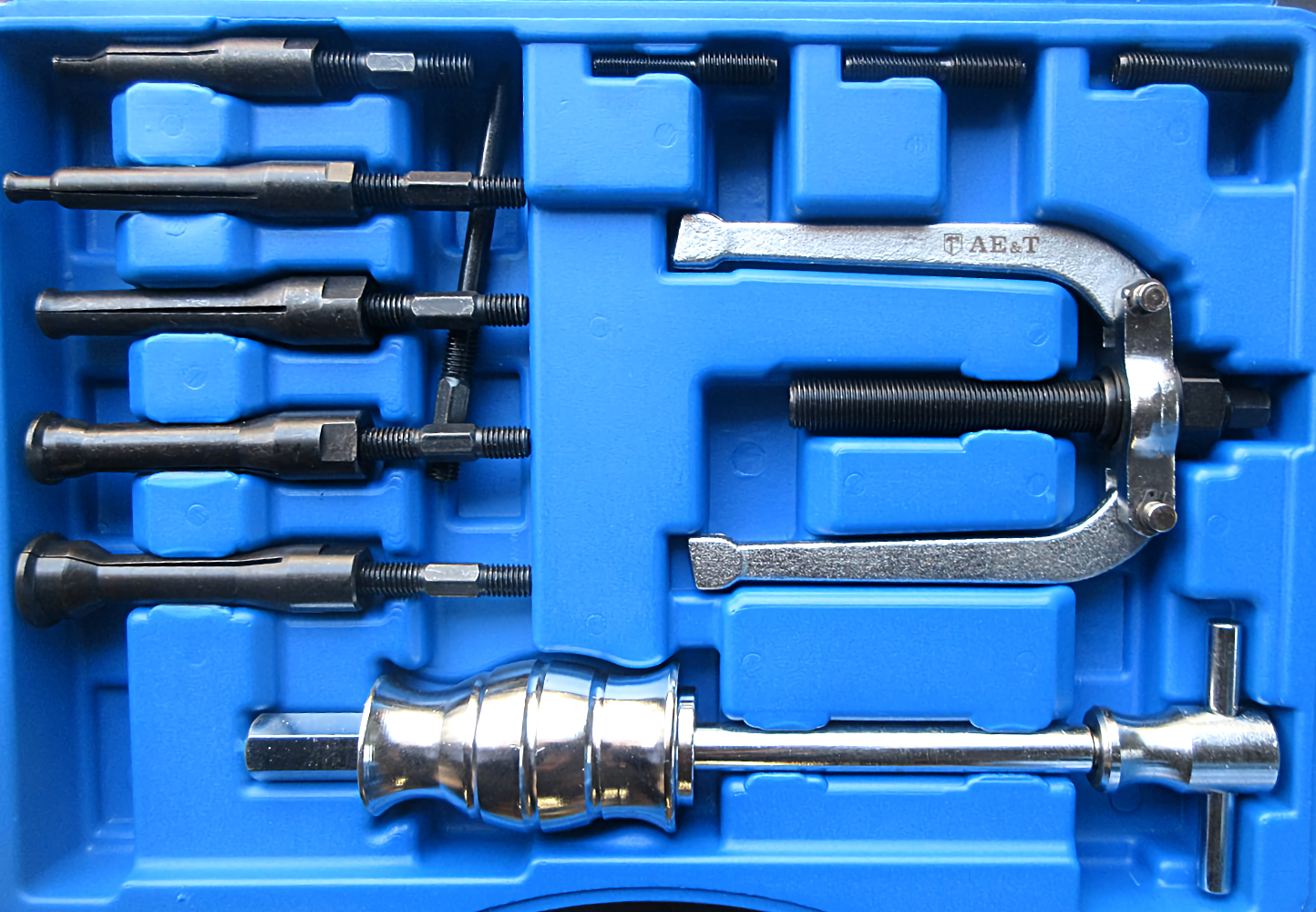 В комплект входит обратный молоток, U-образный съемник, адаптеры для удаления элементов с внутренней резьбой, адаптеры сегментного типа.