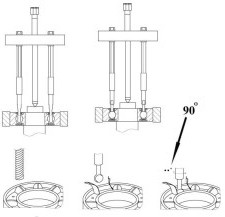 Съемник подшипников через сепаратор Данный тип съемников имеет поворотные захваты, которые позволяют проводить работы по демонтажу подшипников там, где нет возможности использовать другие виды инструмента. Порядок работы: 1. Просверлить два отверстия в сепараторе подшипника 2. Отогнуть в сторону остатки сепаратора 3. Вставить наконечники в промежутки между шариками и повернуть на 90 градусов 4. Произвести демонтаж подшипника Съемник изготовлен из высококачественной инструментальной хромванадиевой стали. Весь инструмент компании СТАНКОИМПОРТ соответствует требованиям стандартов качества ГОСТ и DIN. Характеристики Диапазон захвата 20-95 мм. Внутренние захваты: 5.4/6/8 мм.