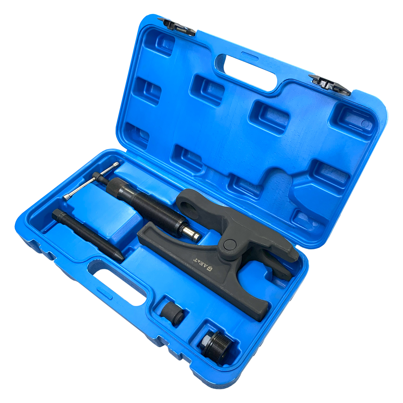 Сверхмощный Съемник шарового шарнира для тяжелых грузовиков. Может использоваться вручную или с 12-тонным гидравлическим цилиндром (в комплекте). Съемник предназначен для демонтажа шаровых шарниров.