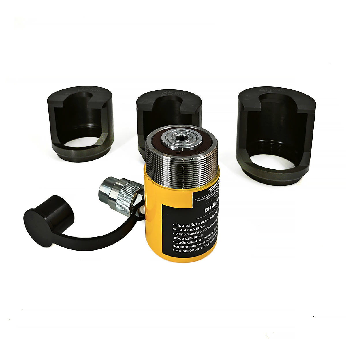 Гидравлический съёмник предназначен для ремонта и обслуживания грузовой и специальной техники. В частности, используется для выпрессовки шаровых опор из рулевых тяг, рулевой сошки и прочих механизмов грузовых автомобилей. Для работы со съемником необходим гидравлический насос с РВД и подходящим адаптером для коммутации гидроцилиндра и насоса (данные компоненты приобретаются отдельно). Особенности съемника шаровых соединений гидравлический для грузовиков и спецтехники, комплект: - Обслуживание можно производить непосредственно на автомобиле. - Инструмент для снятия шаровой опоры грузовых автомобилей и спецтехники очень удобен и прост в применении. - При демонтаже не повреждается шаровая опора и другие детали автомобиля. - Основное отличие от механических съёмников - большее усилие. От аналогичных гидравлических съёмников шаровых соединений - имеет небольшие габариты, что позволяет работать в труднодоступных местах. - В комплект входит три зева разной ширины, что существенно расширяет возможности использования. Технические характеристики съемника - Максимальное усилие: 10 тонн - Максимальное давление в гидросистеме: 700 Бар - Размер зева съемника: 32 и 40 мм - Вес: 3,8 кг