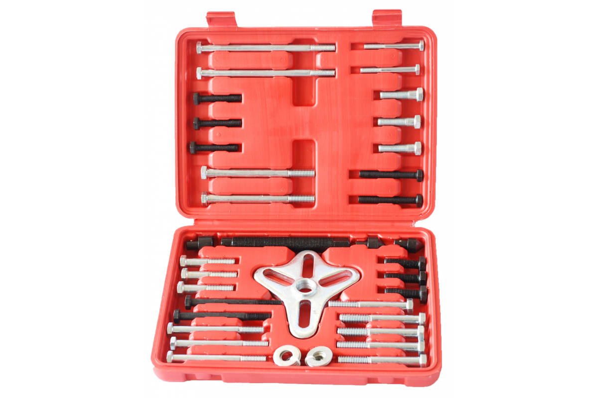 body{margin:0;padding:8px;} p{line-height:1.15;margin:0;white-space:pre-wrap;} ol,ul{margin-top:0;margin-bottom:0;} img{border:none;} li>p{display:inline;} Назначение Применяется для снятия шкивов различной конфигурации.. Особенности Набор удобен в работе и, благодаря различным фиксирующим болтам и центрующим насадкам, является универсальным. Подходит для большинства марок и моделей легковых автомобилей. Комплектация Силовой болт (общая длина 130 мм) - 1 шт. Адаптер основной - 1 шт Фиксирующие болты с различной длиной, диаметра и шагом резьбы - 30 шт. Шайбы - 11 шт. Насадка центрующая с выемкой - 1 шт. Насадка центрующая большая с конусом наружным - 1 шт. Насадка центрующая малая с конусом наружным - 1 шт. Насадка центрующая малая с конусом наружным - 1 шт. Качество Корпуса съемников изготовлены из качественной инструментально стали методом горячей ковки, что придает высокую прочность. Силовые винты закалены и имеют класс прочности 10.9 Принцип работы Силовой болт вкручивается в центральное отверстье адаптера. Для удобства, на силовой болт возможно установить одну из трёх центрующих насадок. В отверстья шкива вкручиваются два или три подходящих болта через адаптер. Далее с помощью торцевой головки или гаечного ключа на 19 мм вращаете силовой болт, тем самым стягивая шкив с его оси. Внимание Использование набора допускается только квалифицированным персоналом с соблюдением техники безопасности! Гарантия На инструмент торговой марки СТАНКОИМПОРТ распространяется гарантия 12 месяцев.