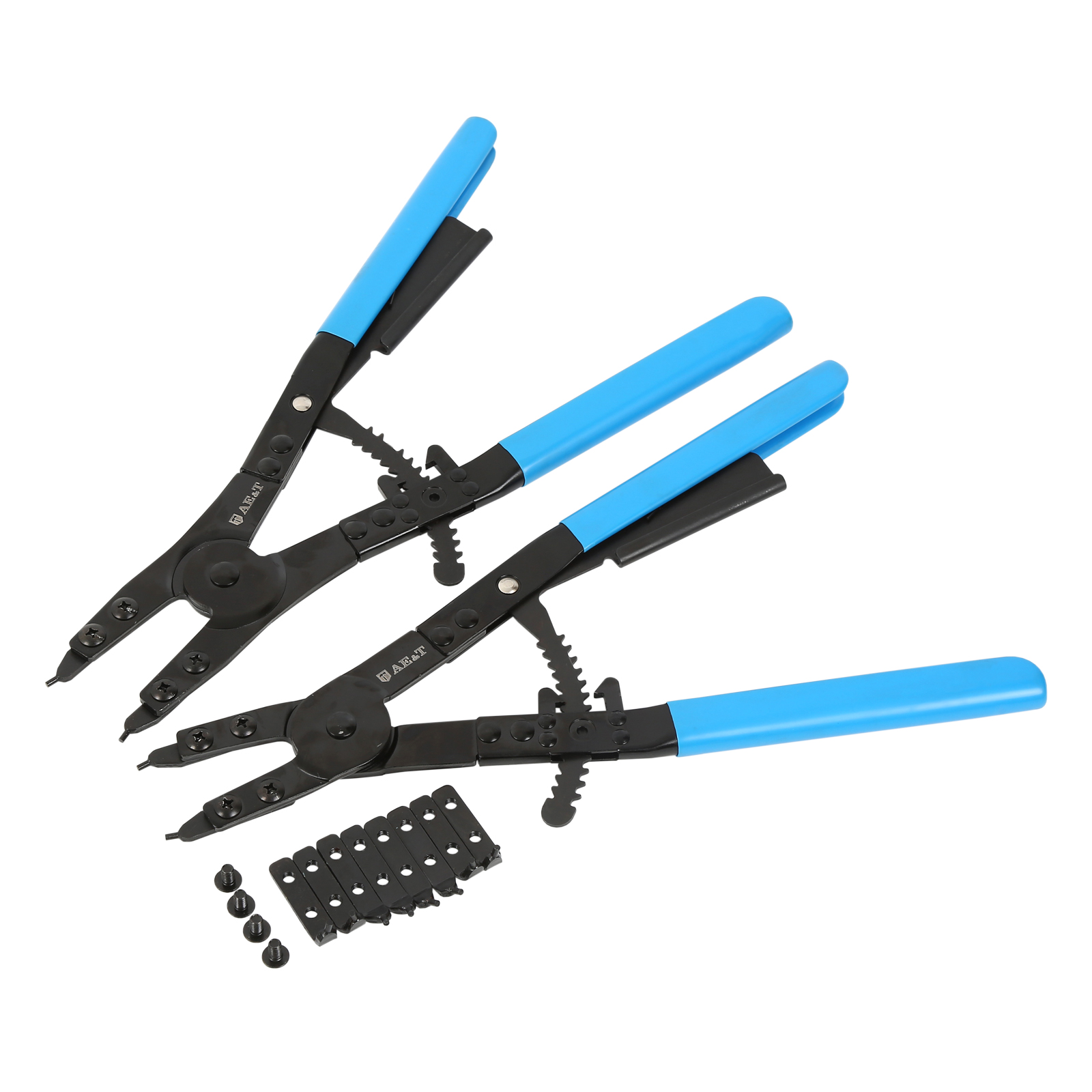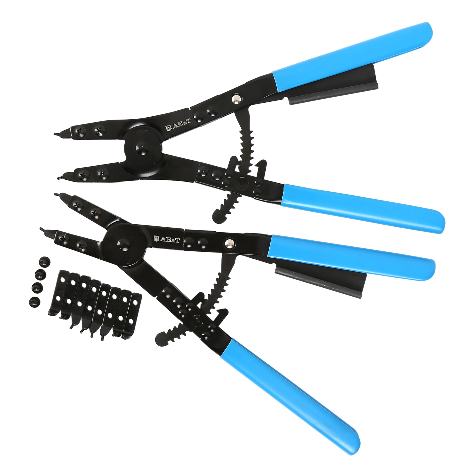 Съемники TA-H1037 пригодятся как простому мастеру, так и профессионалу – они оснащены храповым механизмом для фиксации в одном положении, чтобы накрепко прихватить стопорное кольцо и удерживать. Наконечники съемные и заменяемые, с углами 45 и 90 градусов.