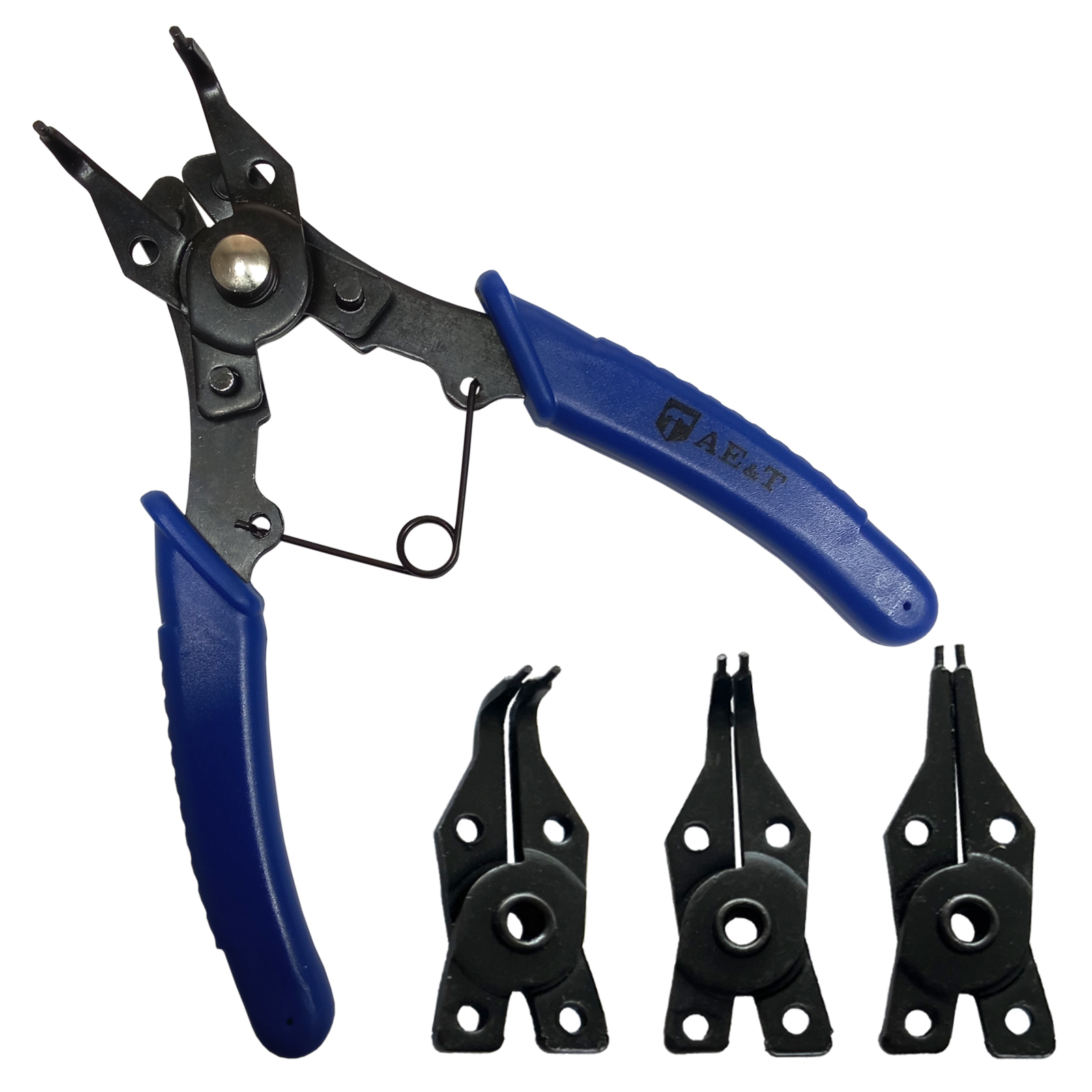 Съемник TA-H1035 выполнен в виде клещей-плоскогубцев с четырьмя сменными носами, которые позволяют использовать их с самыми разными стопорными кольцами.