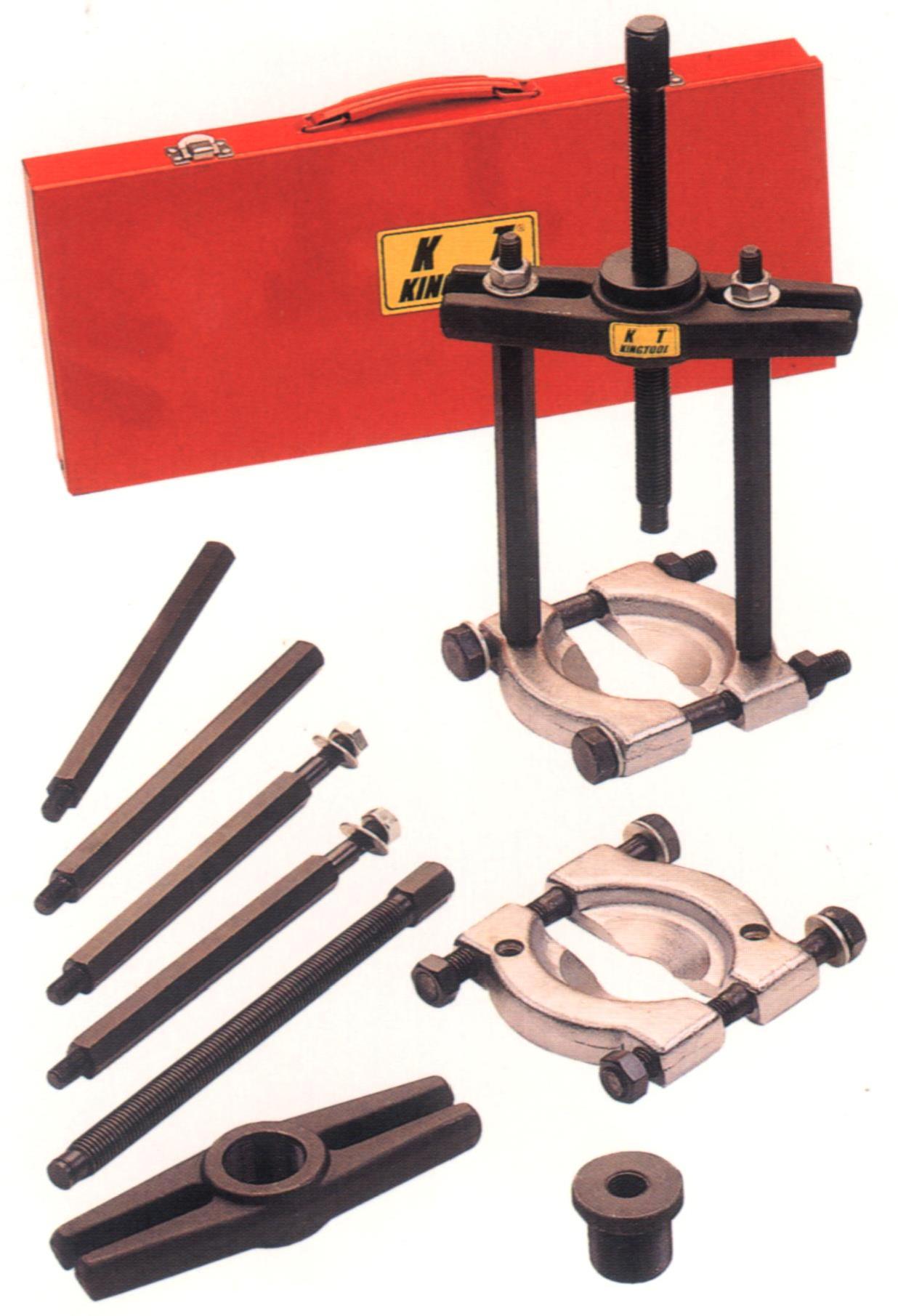 KA-1310 Съемник стяжной сегментный 75-105 мм (набор). Предназначен для демонтажа подшипников (в том числе конических), шестерен генераторов и аналогичных деталей, где невозможно использование съёмника с захватами-лапами. Особенности: Диаметр подшипников: 75-105 мм Удлинительные штанги в комплекте. Комплектность: Поперечная балка-держатель - 1 шт. Главная штанга для сепаратора 200 мм - 2 шт. Удлинительная штанга для сепаратора 235 мм - 2 шт. Центральный болт-толкатель (290 мм) с центрующей насадкой - 1 шт. Съёмник сегментный для подшипников Ø 75-105 мм - 1 шт. Втулка центральная резьбовая - 1 шт. Инструкция - 1 шт. Кейс пластиковый - 1 шт. Набор относится к разряду профессионального инструмента. Его использование допускается только квалифицированным персоналом, соблюдая технику безопасности!