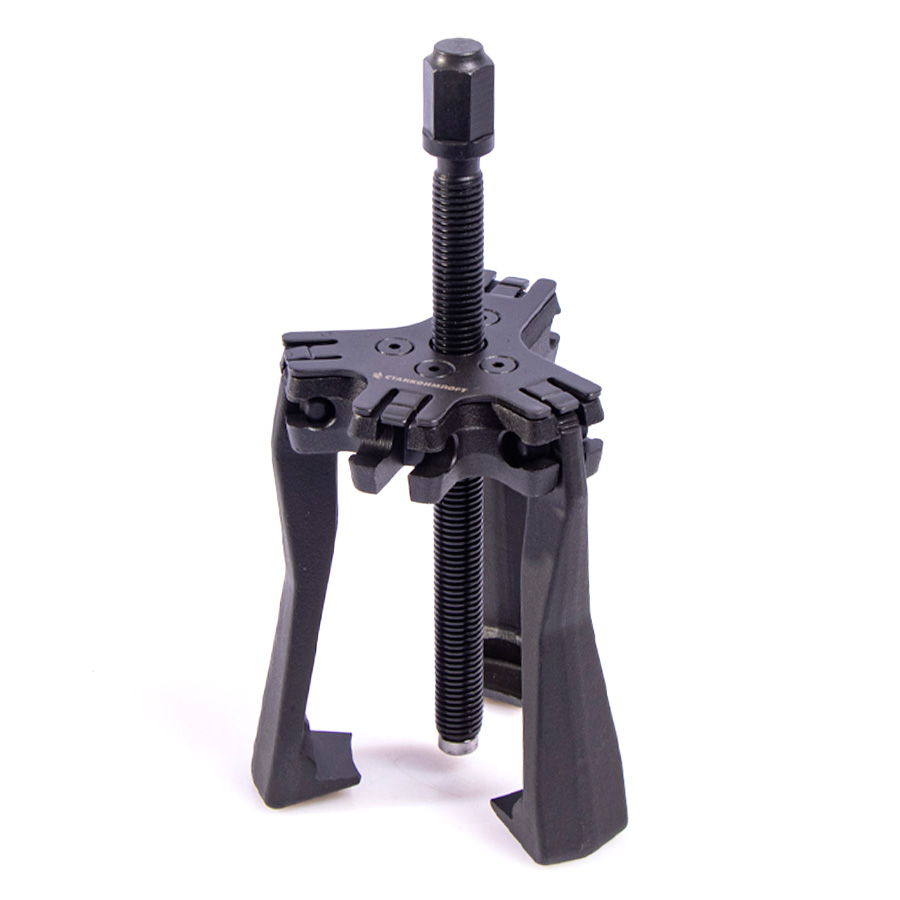 ST070109 Съемник универсальный 2-3х захватный 100-125мм Применяется для демонтажа подшипников и шкивов различной конфигурации Отличительной особенностью данного съемника является механизм крепления захватов, которой представляет собой, кованную упорную площадку в которую устанавливаются захваты. На захватах имеются специальные насечки позволяющие фиксировать захват в заданном положении, удержание обеспечивается за счет специальной пластины из пружинной стали. Благодаря такой конструкции можно с считанные секунды трансформировать съемник под внутренний или внешний захват. Диапазон захвата до 125мм. Макс нагрузка 5 т.