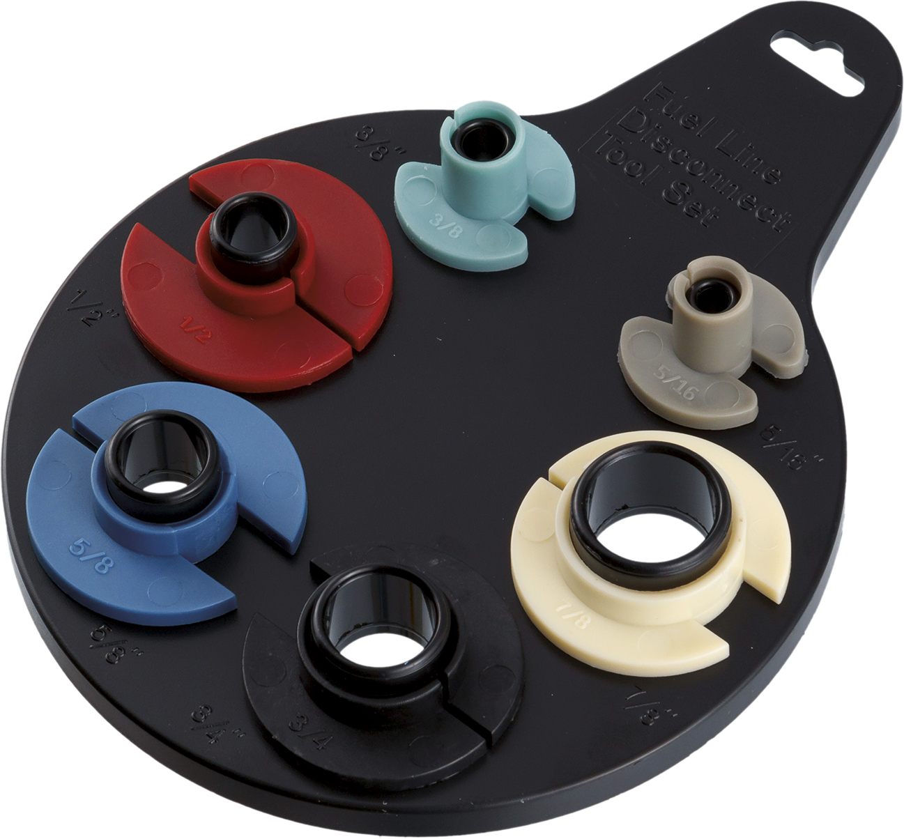 Особенности: Набор включает шесть съёмников и держатель. Для информативности съёмники выполнены из пластика разных цветов. Форма и размер съёмников позволяют использовать их в ограниченном пространстве. Комплектность: Съёмник 5/16” - 1 шт. Съёмник 3/8” - 1 шт. Съёмник 1/2” - 1 шт. Съёмник 5/8” - 1 шт. Съёмник 3/4” - 1 шт. Съёмник 7/8” - 1 шт. Держатель съёмников - 1 шт. Блистерная упаковка - 1 шт.
