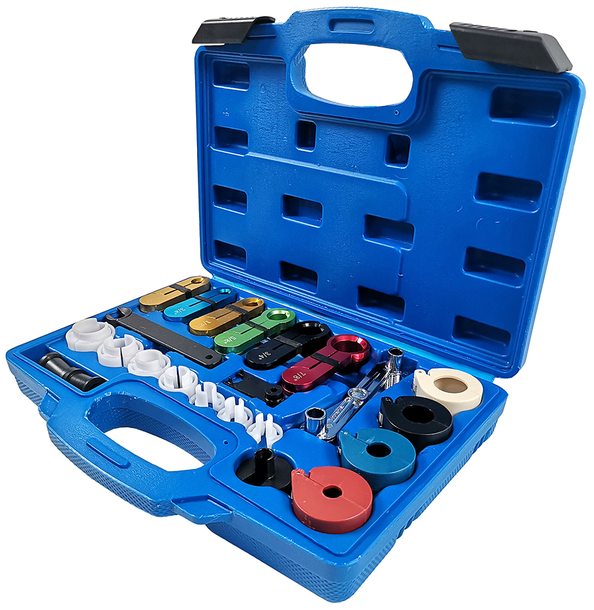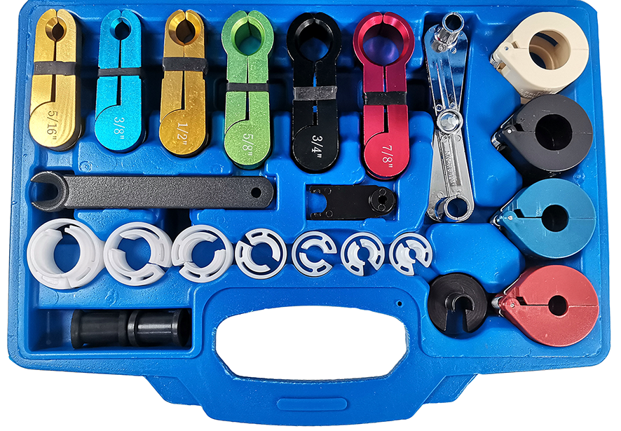Съемники TA-A1039 предназначены для проведения работ с топливными линиями и автомобильными кондиционерами. Комплект из двадцати двух предметов, совместимых с подавляющим большинством систем отечественных машин и иномарок.