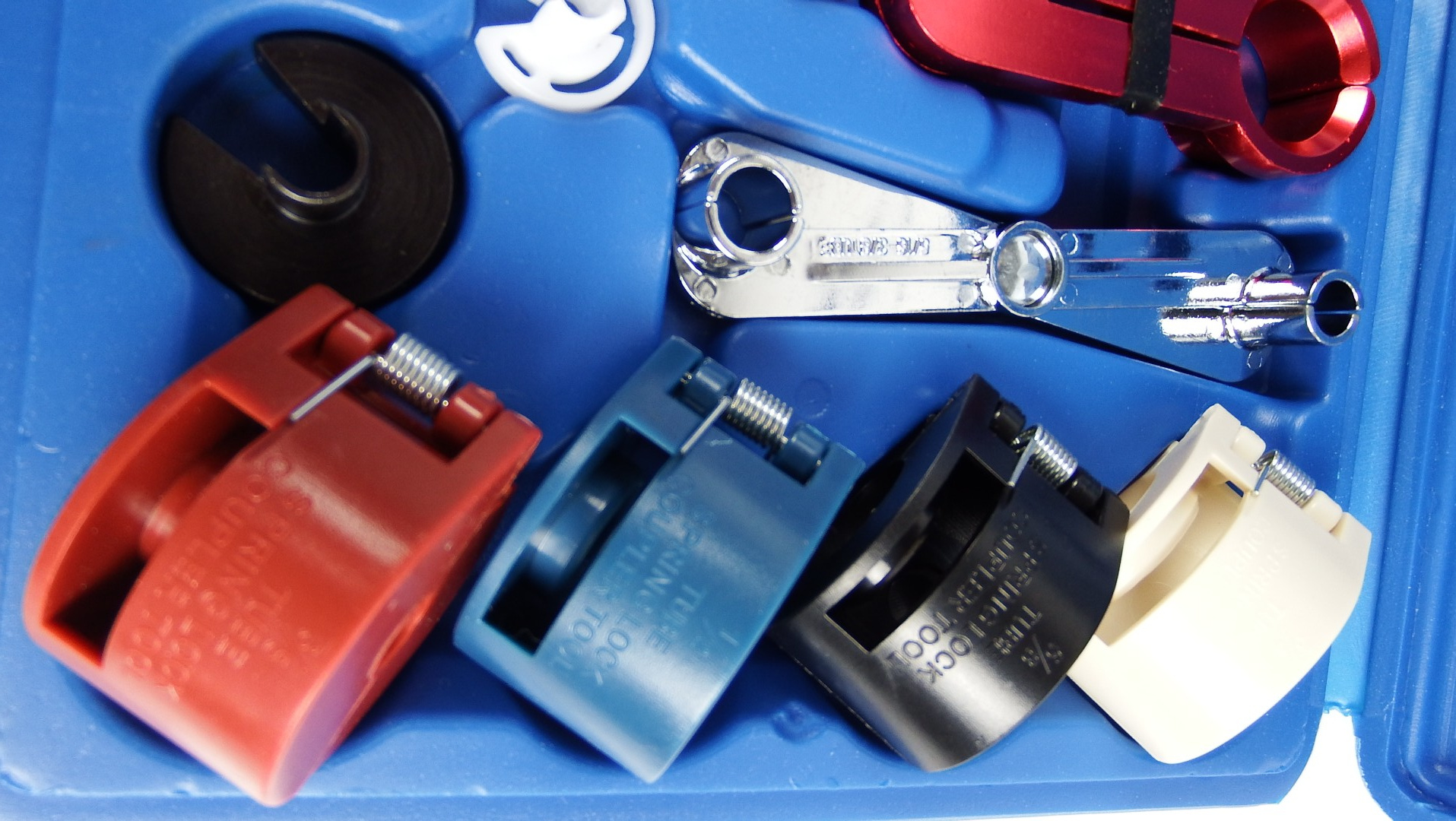 Для пружинных фиксаторов: 3/8" (красный), 1/2" (синий), 5/8" (чёрный), 3/4" (белый);