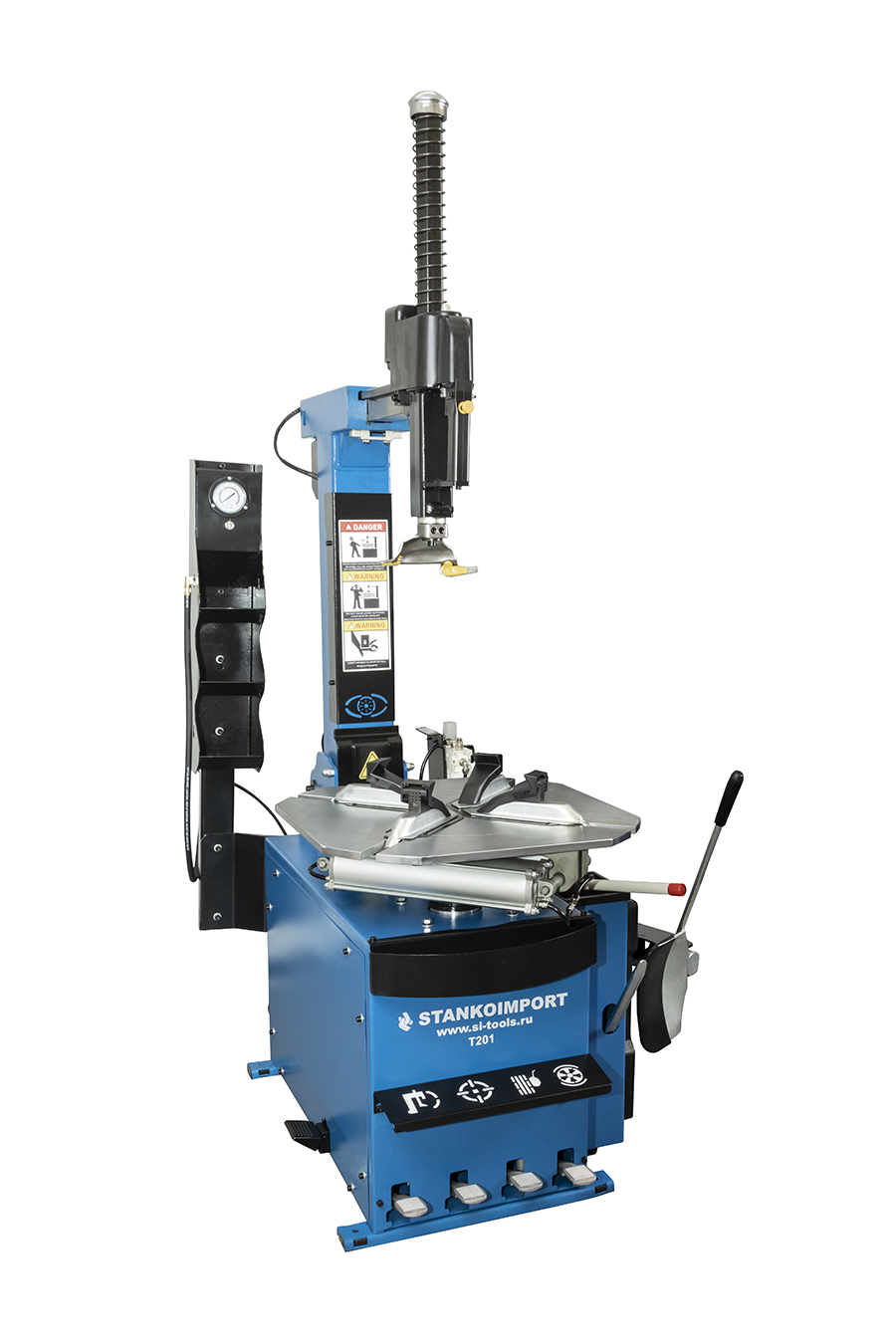body{margin:0;padding:8px;} p{line-height:1.15;margin:0;white-space:pre-wrap;} ol,ul{margin-top:0;margin-bottom:0;} img{border:none;} li>p{display:inline;} table.blueTable2 {background-color: #FFFFFF; width: 100%;text-align: left;border-collapse: collapse;} table.blueTable2 td, table.blueTable th { border: 0px solid #AAAAAA;padding: 3px 2px;} table.blueTable2 tbody td {font-size: 13px;} table.blueTable2 tr:nth-child(odd) { background: #EEEEEE;} table.blueTable2 tfoot td { font-size: 14px;} table.blueTable2 tfoot .links { text-align: right;} table.blueTable2 tfoot .links a{display: inline-block;background: #1C6EA4;color: #FFFFFF;padding: 2px 8px;border-radius: 5px;} Назначение: Шиномонтажный автоматический станок «Станкоимпорт» - это оборудование для проведения работ по монтажу и демонтажу покрышек на колесные диски. Используют в мастерских станций технического обслуживания и шиномонтажных постах. Подходит для обслуживания покрышек колес легковых автомобилей и легкого грузового транспорта — стандартных, низкопрофильных, камерных и бескамерных на алюминиевых и стальных дисках. Особенности: Блок подготовки воздуха комплектуется защитными колпачками. Полностью автоматическое управление воздухом. Возможность установки двух видов «третьей руки». Технические характеристики: Электропитание, В 380 Внешний зажим 10"-21" Внутренний зажим 12"-24" MAX диаметр колеса 1140 мм (41”) MAX ширина колеса 355 мм (14”) Рабочее давление 8-10 бар Количество скоростей 1 Максимальное усилие отжима 2500кг Тип Автомат Установка 3й руки 2 вида Комплектация: Монтировка да накладки на монтажную головку да пластиковые накладки на кулачки стола да Упаковка: Длина, мм 960 Ширина, мм 760 Высота, мм 1080 Вес нетто, кг 210 Вес брутто, кг 247