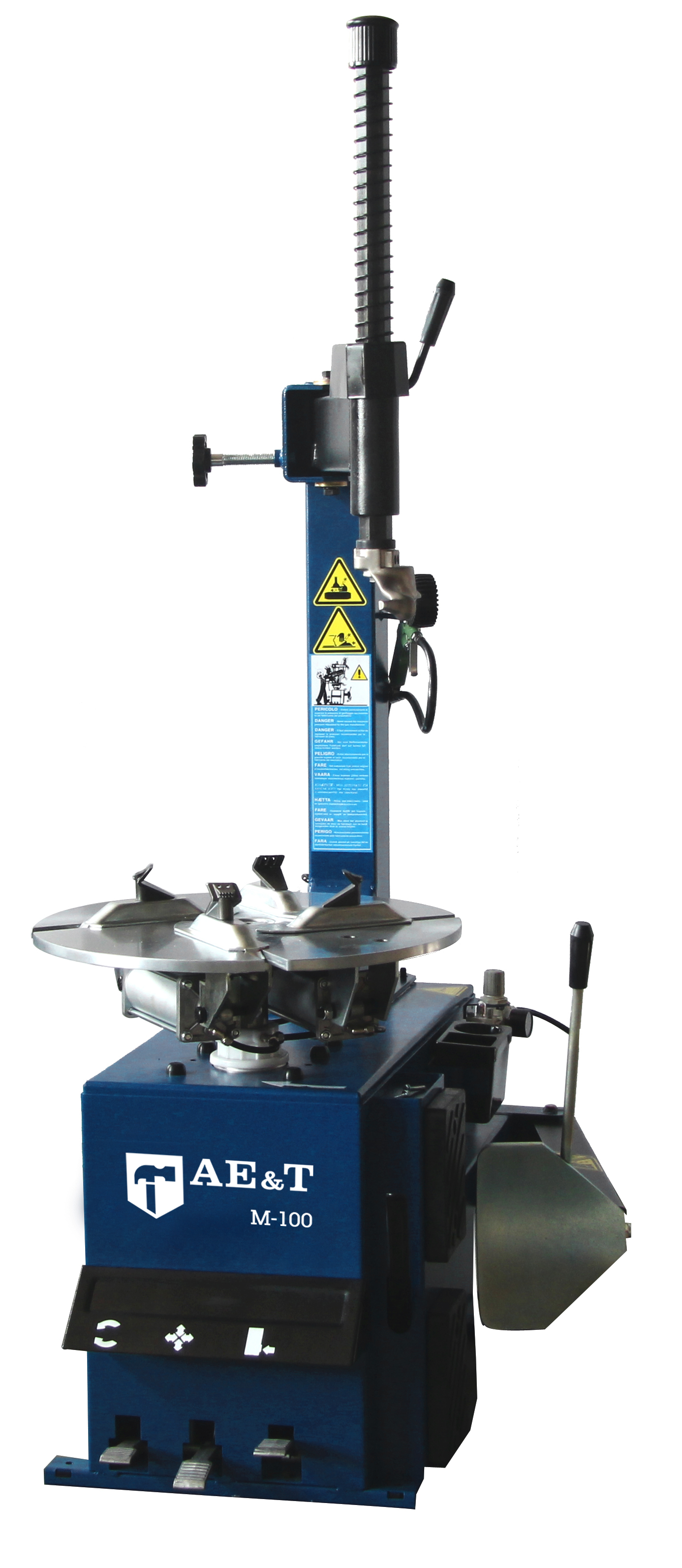 Полуавтоматический шиномонтажный стенд для легковых автомобилей. Облегчает демонтаж и монтаж шин с внутренним диаметром от 10 до 22 дюймов.