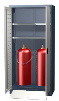 Крепления для двух баллонов, 2 оцинкованных полки для хранения, убираемая наклонная полка. Размеры: 950х500х1950h Вес: 116 кг., V-1,028 куб.