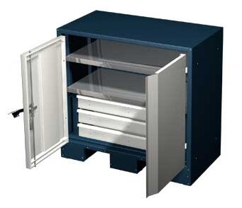 Шкаф Н-900мм для оснастки и инструмента: — 2 оцинкованные полки — 3 ящика - Распределенная нагрузка на полку -200кг - Распределенная нагрузка на ящик - 30кг - Ригельная система запирания с тягами - Возможность крепления ящиков пластиковых на дверь шкафа - Порошковая покраска. Размеры: 950х500х900h