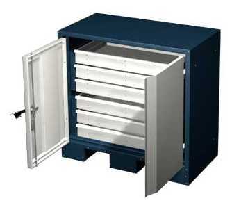 Шкаф Н-900мм для оснастки и инструмента: - 6 ящиков - Распределенная нагрузка на ящик - 30кг - Ригельная система запирания с тягами - Возможность крепления ящиков пластиковых на дверь шкафа - Порошковая покраска RAL 7016; 3000, 5015, панель ящиков RAL 7700. Шагрень. - Размеры: 950х500х900h