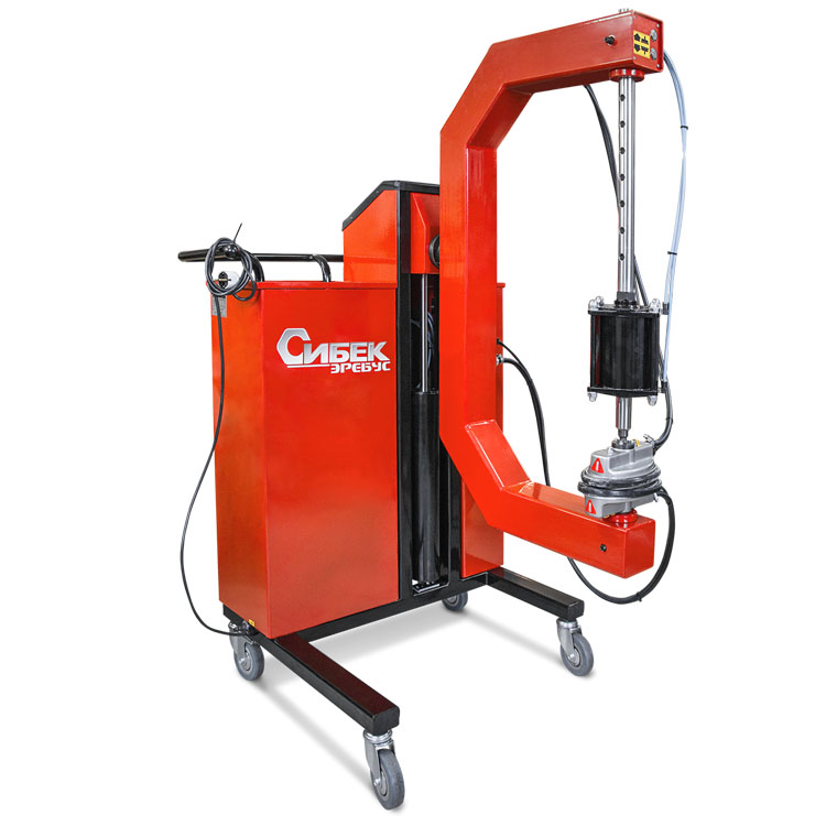 Четыре колеса облегчают лёгкий подвод вулканизатора к ремонтируемой зоне. Конструкция корпусной скобы вулканизатора «Эребус» допускает работу как в вертикальном, так и горизонтальном положении, а пневмолифт обеспечивают четкую установку прижимов на ремонтируемый участок покрышки без излишних физических усилий со стороны специалиста по ремонту, соответственно сокращая время установки покрышки на вулканизатор и продолжительность рабочего цикла.