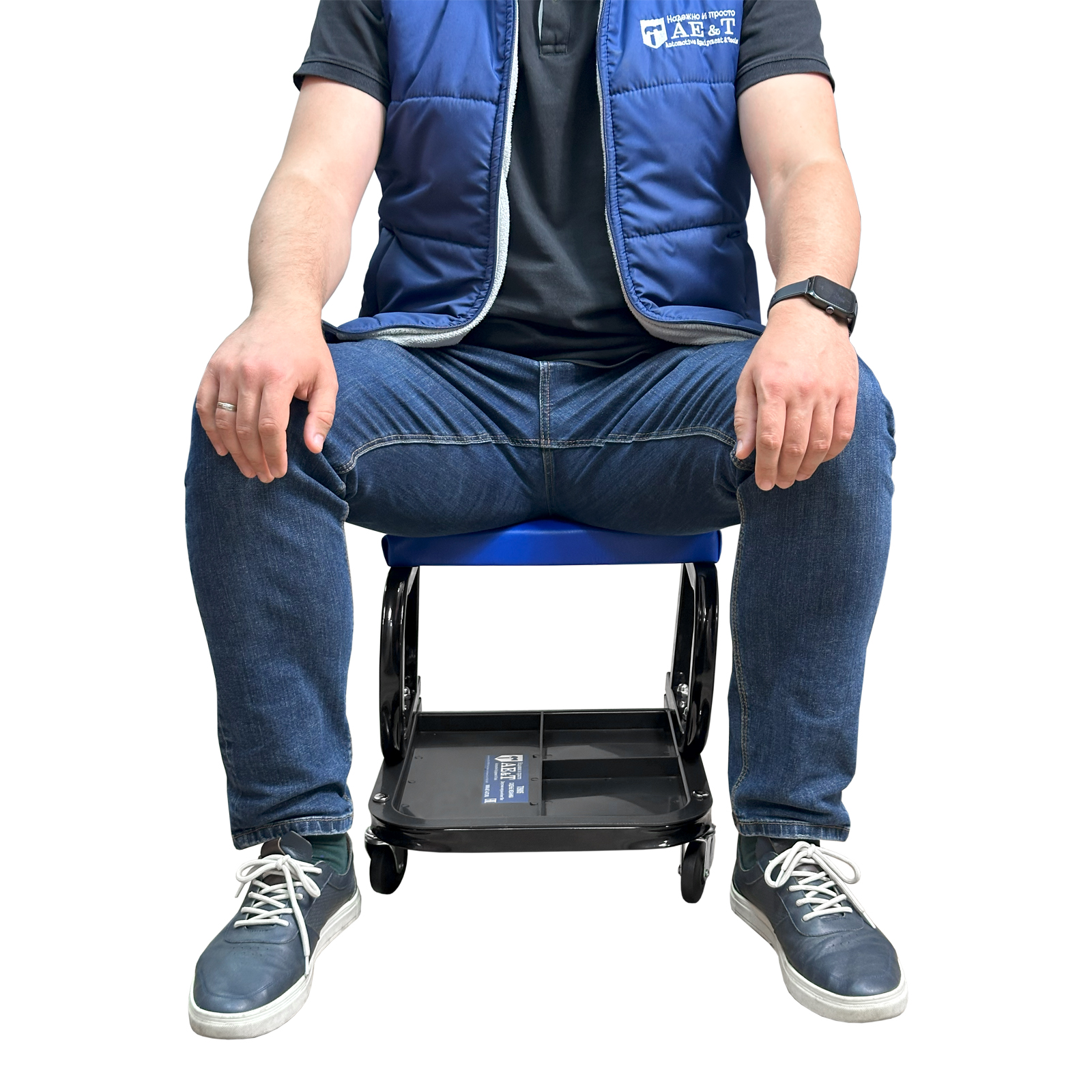 Сиденье механика T09005 позволит вам свободно передвигаться по рабочему пространству, а также всегда иметь под рукой нужный инструмент.