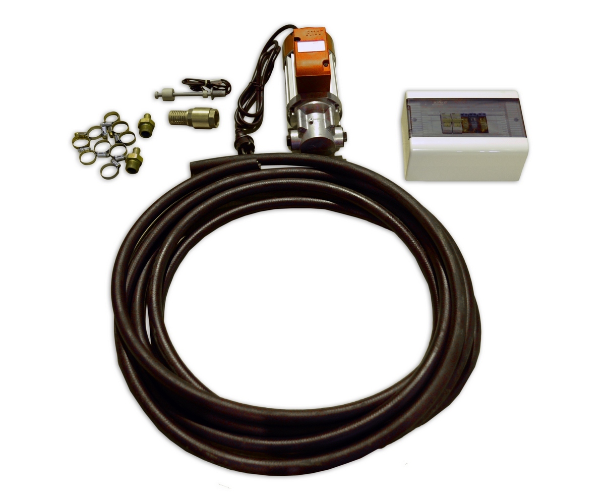 Система состоит из насоса перекачки дизтоплива Pressol 23034 с производительностью 60л/мин, датчика уровня жидкости, пульта подкачки, эл.магнитного клапана и штуцеров.