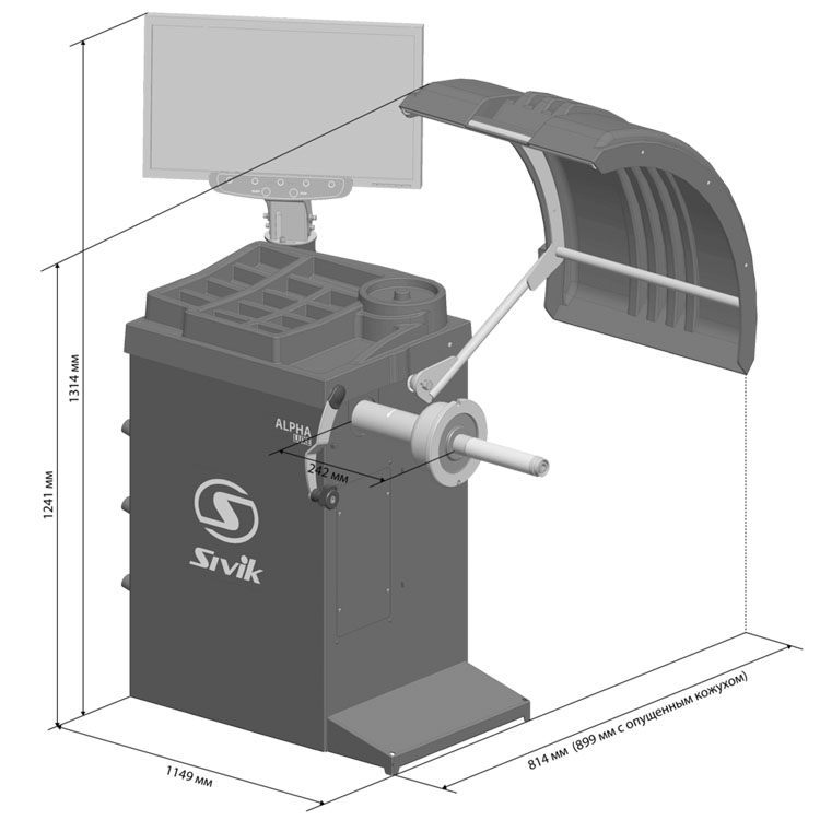 Макс. диаметр диска, дюйм 26 Макс. диаметр колеса, мм 800 Макс. ширина диска, дюйм 20 Макс. масса колеса, кг 65 Точность, г 1 Диаметр вала, мм 40 Дисплей LCD 19Габаритные размеры, мм 1080х1126х1341