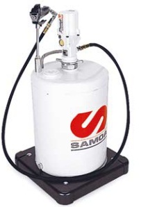 Солидолонагнетатель пневматический Насос: Pump Master 3. Защитная подставка с 4 роликами. Раздаточный пистолет. Поставляется без мембраны. В комплекте - декоративный кожух с логотипом Samoa (бочка для консистентной смазки в комплект не входит)