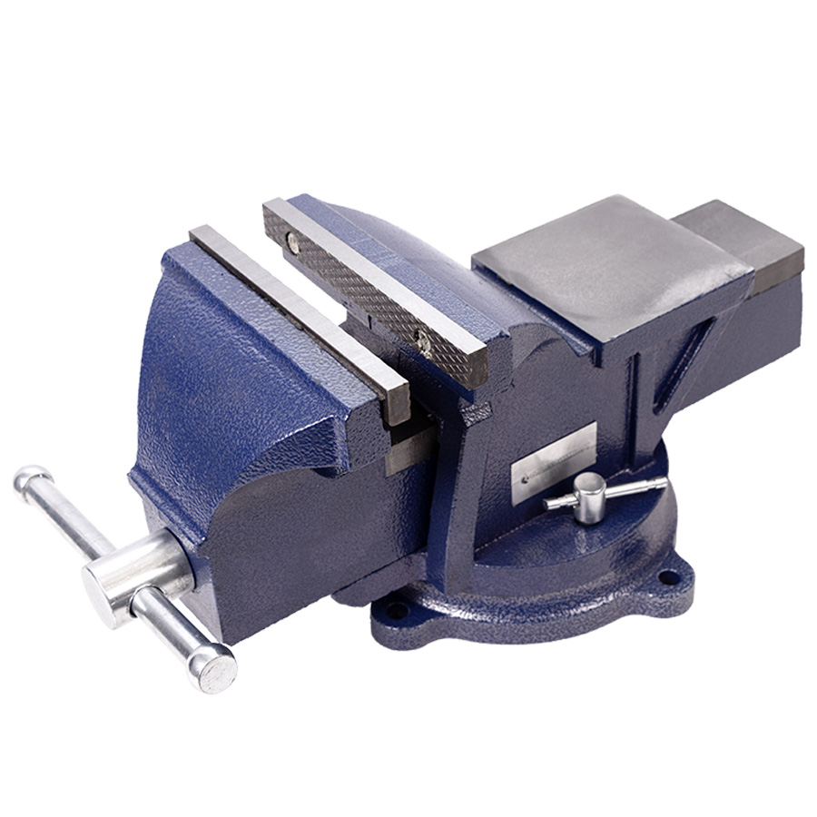 ST420-6 Тиски слесарные поворотные с наковальней, 150 мм Используются для надёжной фиксации деталей и заготовок для их последующей обработки. Широко применяются в слесарных мастерских, автохозяйствах и на производстве. Особенности: Поворотная конструкция с фиксаторами 360°. Наличие наковальни. Мощный силовой винт. Изготовлены из литой углеродистой стали SC37. Твердость губок тисков HRC 25 ° ~ HRC 30 ° Качественная окраска. Вес – 14,8 кг Комплектность: Тиски слесарные - 1 шт. Коробка картонная - 1 шт