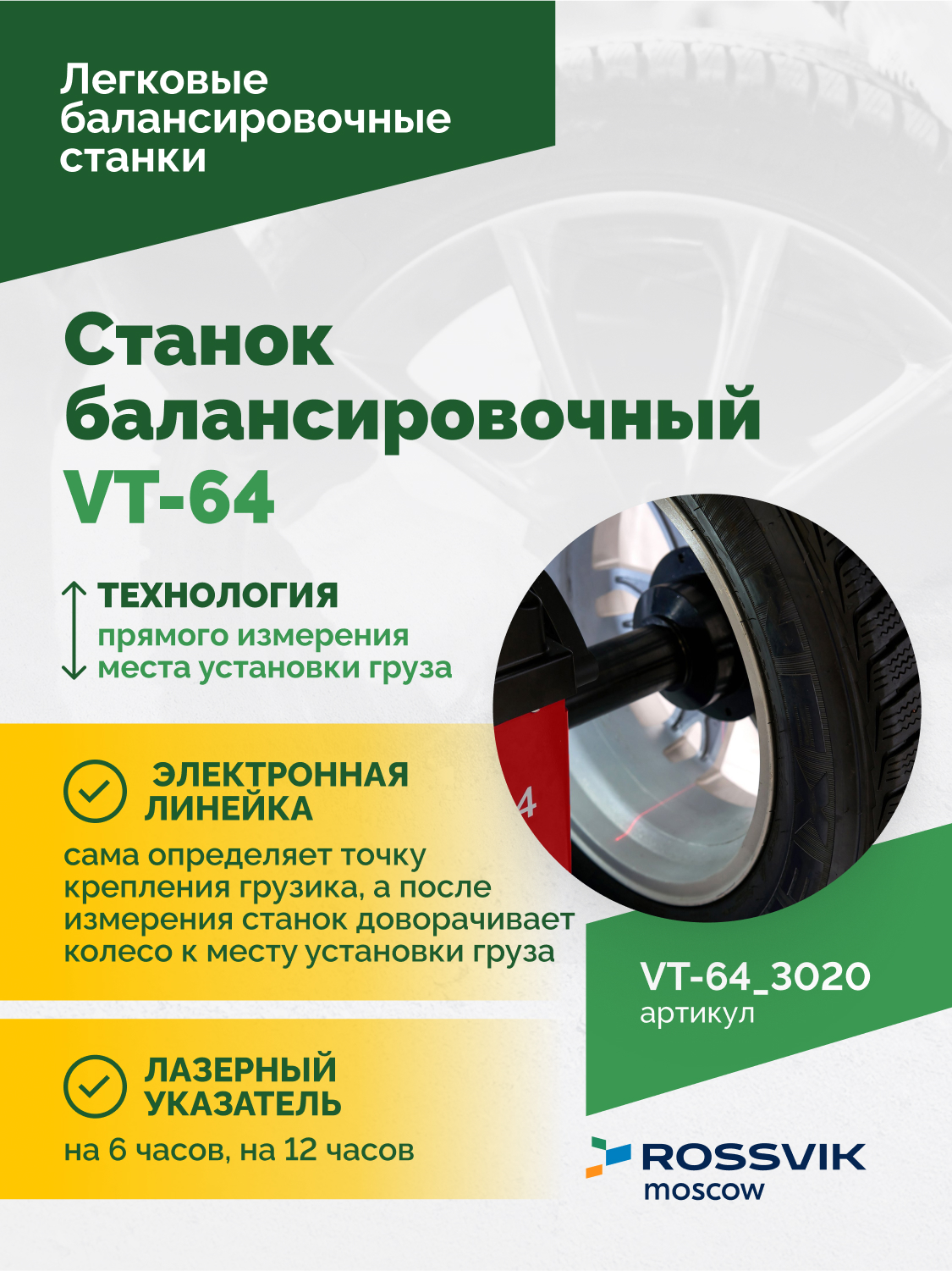 Станок балансировочный ROSSVIK VT-64, 220В, RAL3020 КРАСНЫЙ