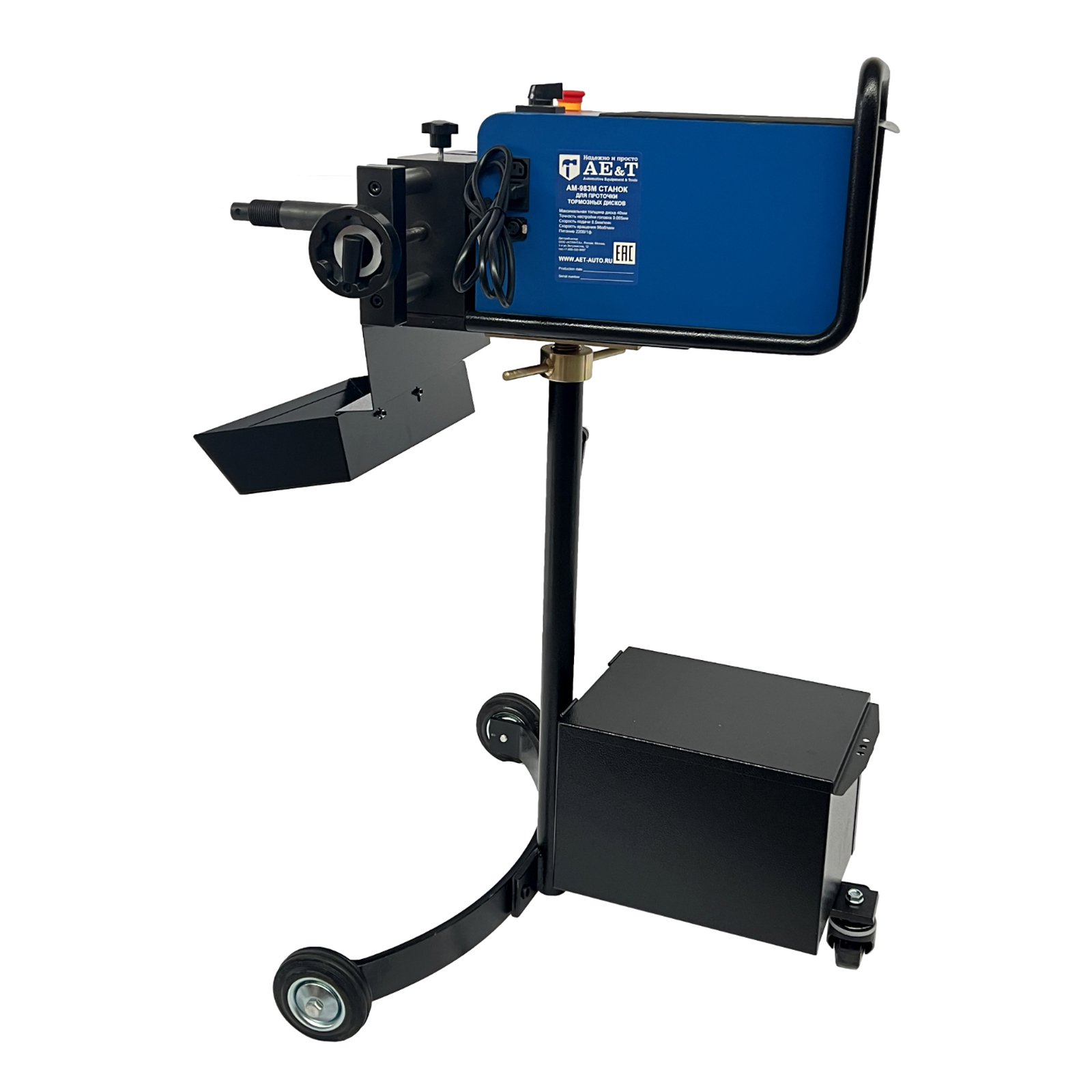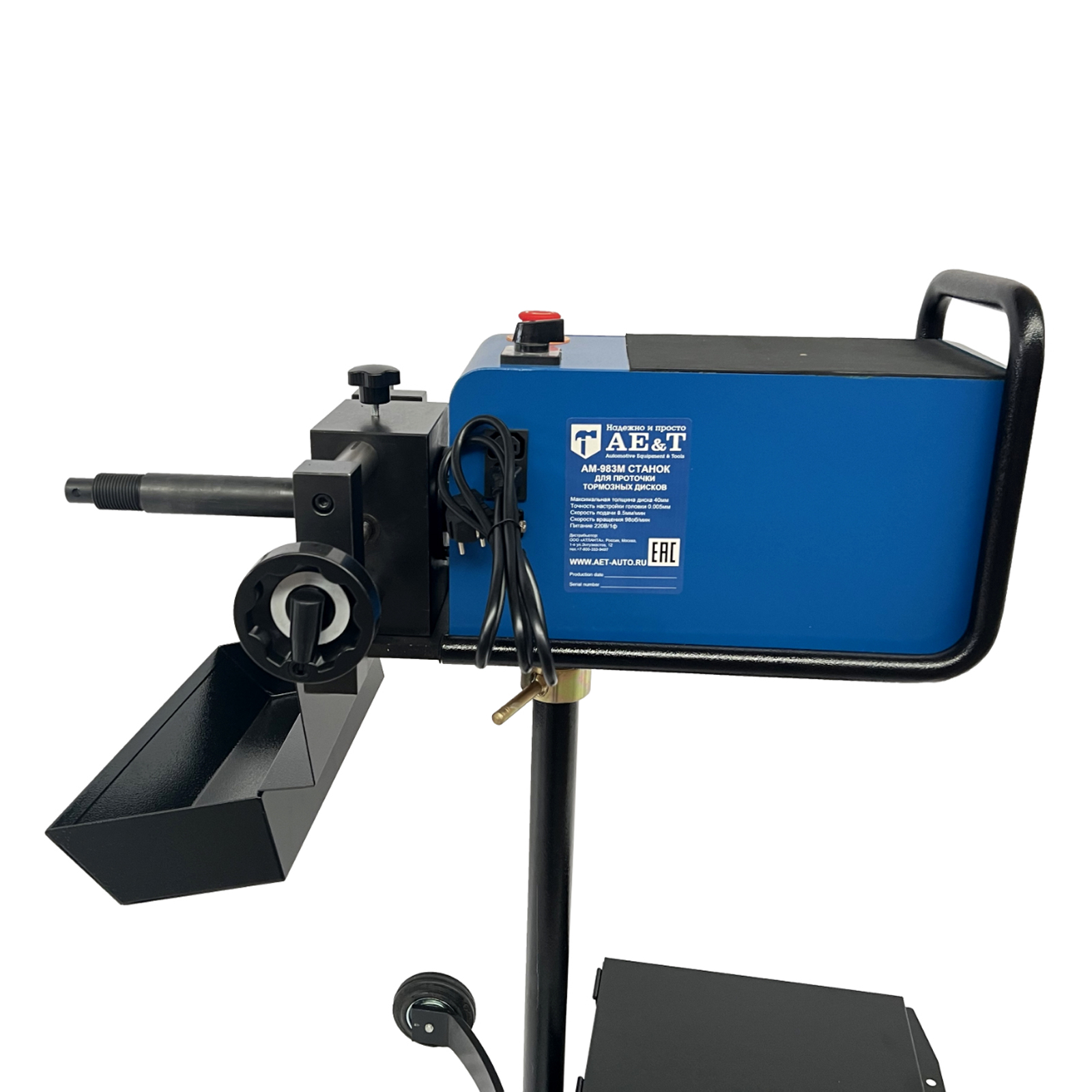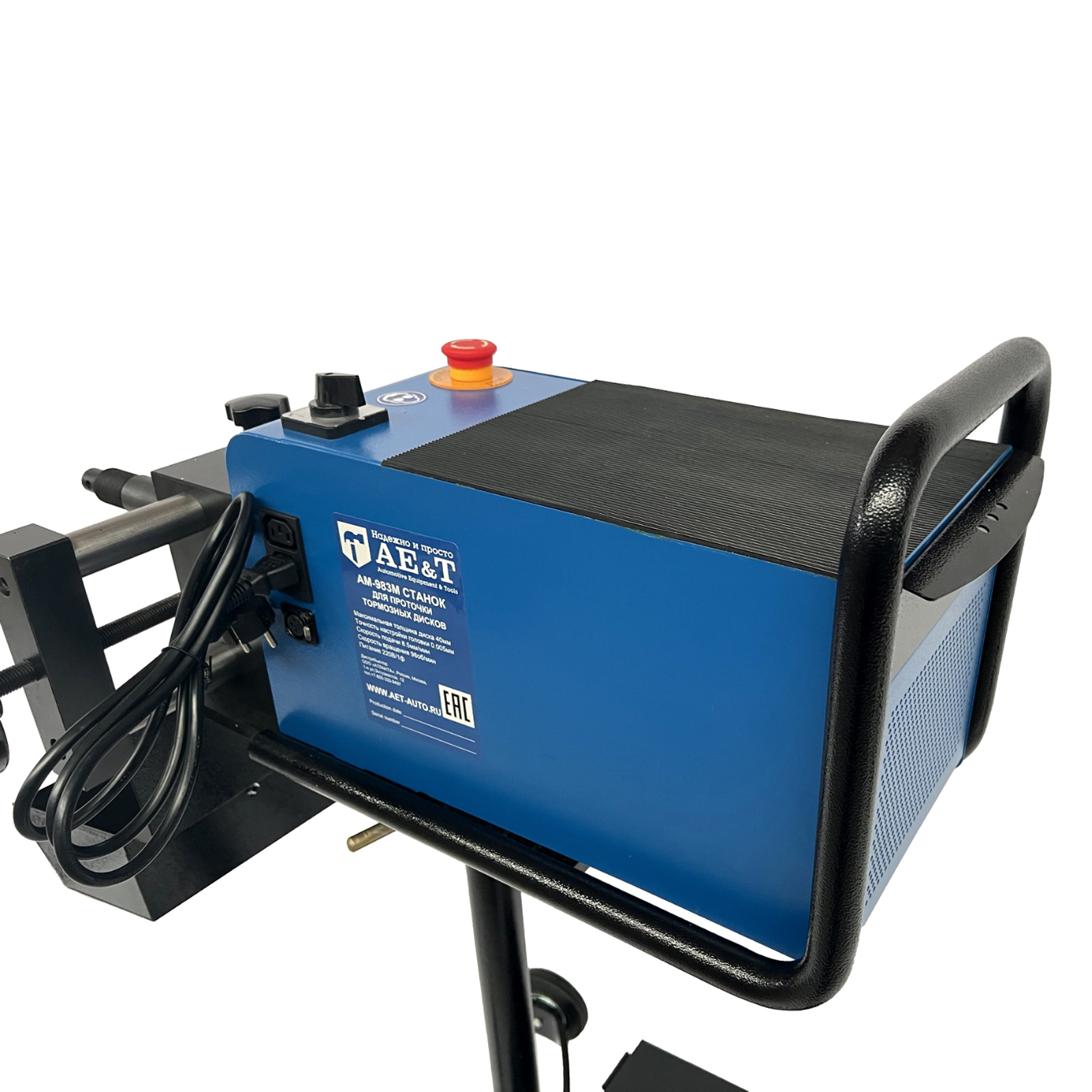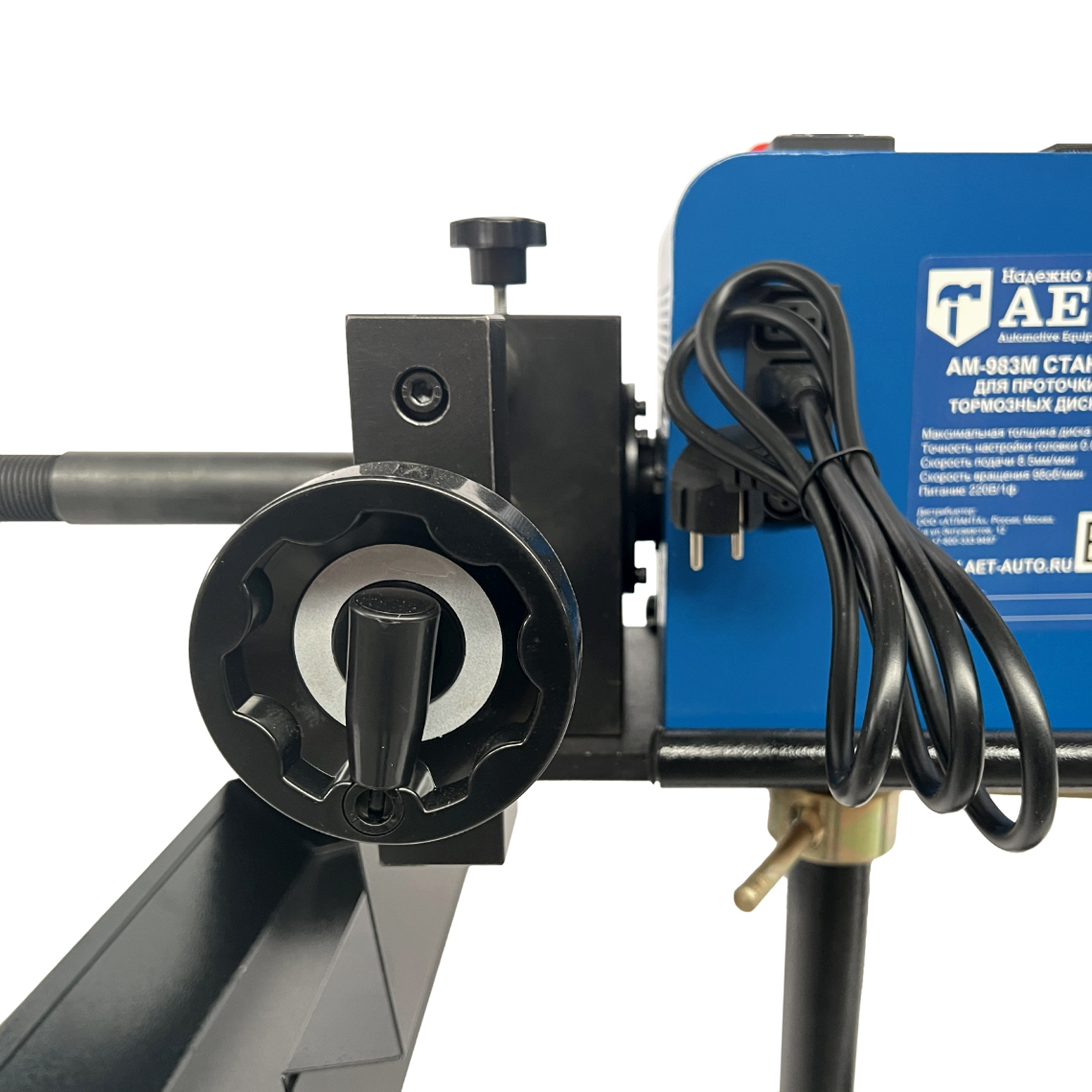 Станок AM-983M удобен тем, что позволяет протачивать тормозные диски, не снимая их с автомобиля, что существенно экономит время, но в тоже время дает возможность проточить диски до их установки на автомобиль, что позволяет высвободить подъемник.